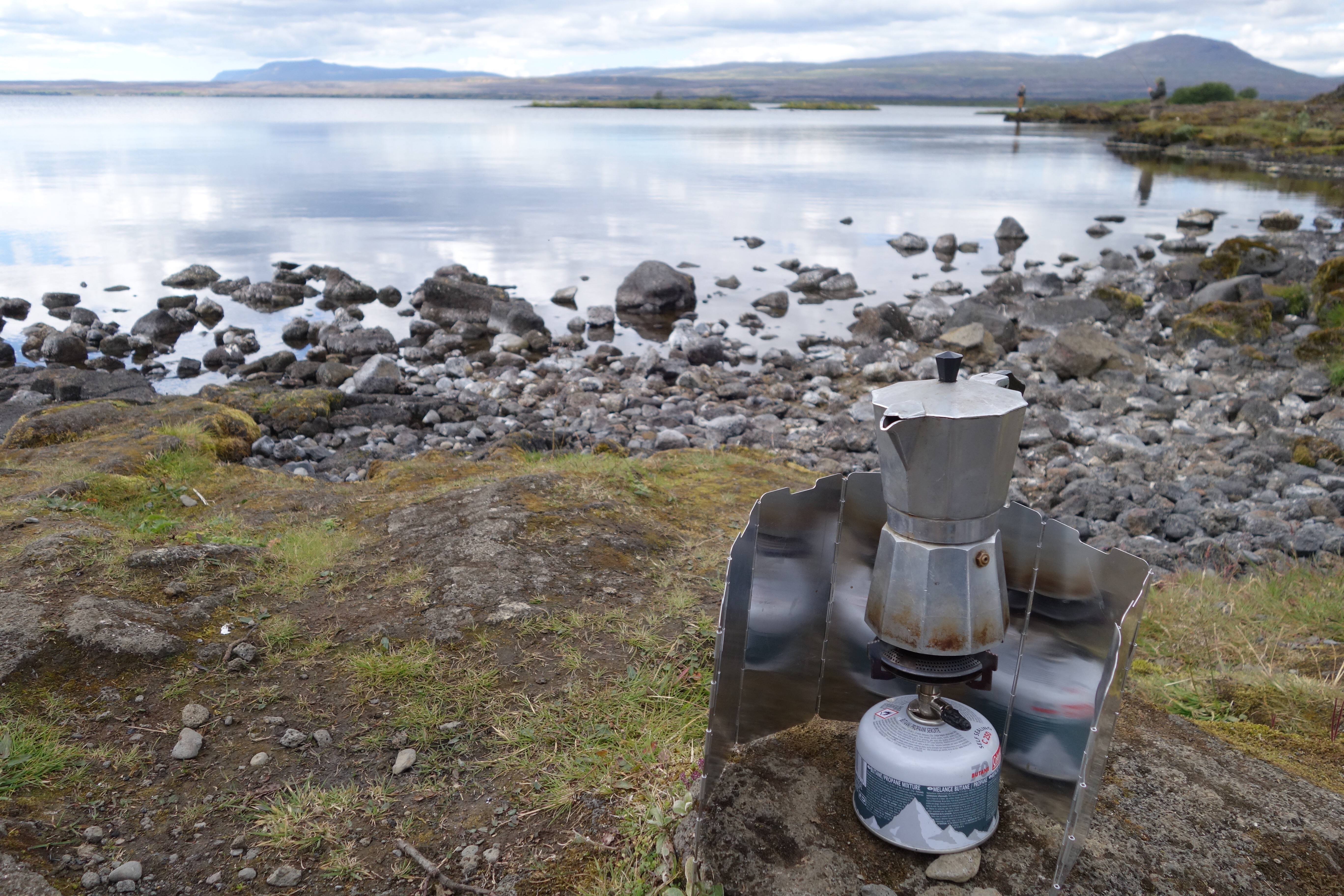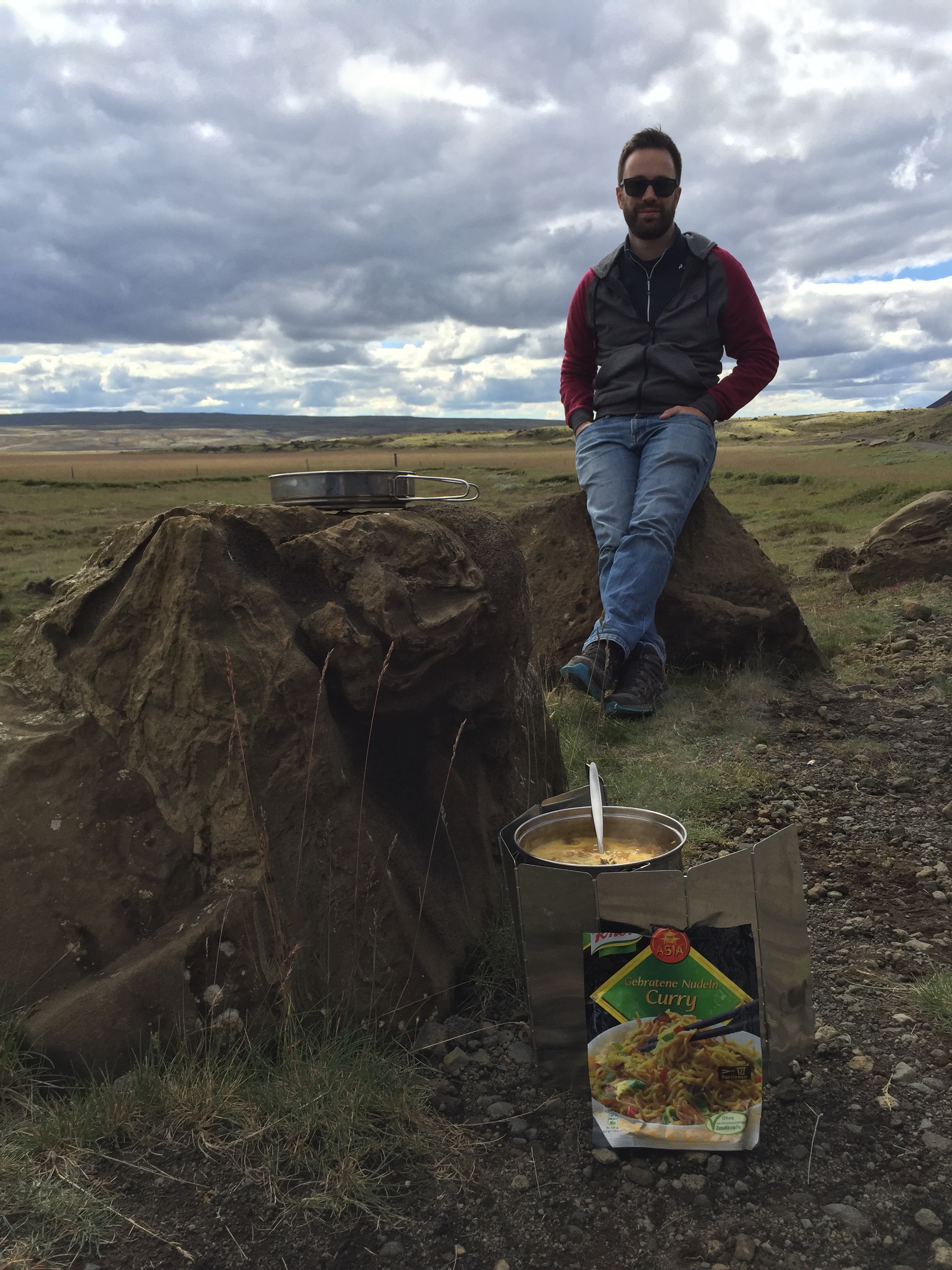 Dann gings weiter Richtung Pingvellir, aber vorher kurzer Zwischenstop fernab der Straße zum Mittagessen „kochen“. Das Camperdasein ist kein Gourmetleben. 😉