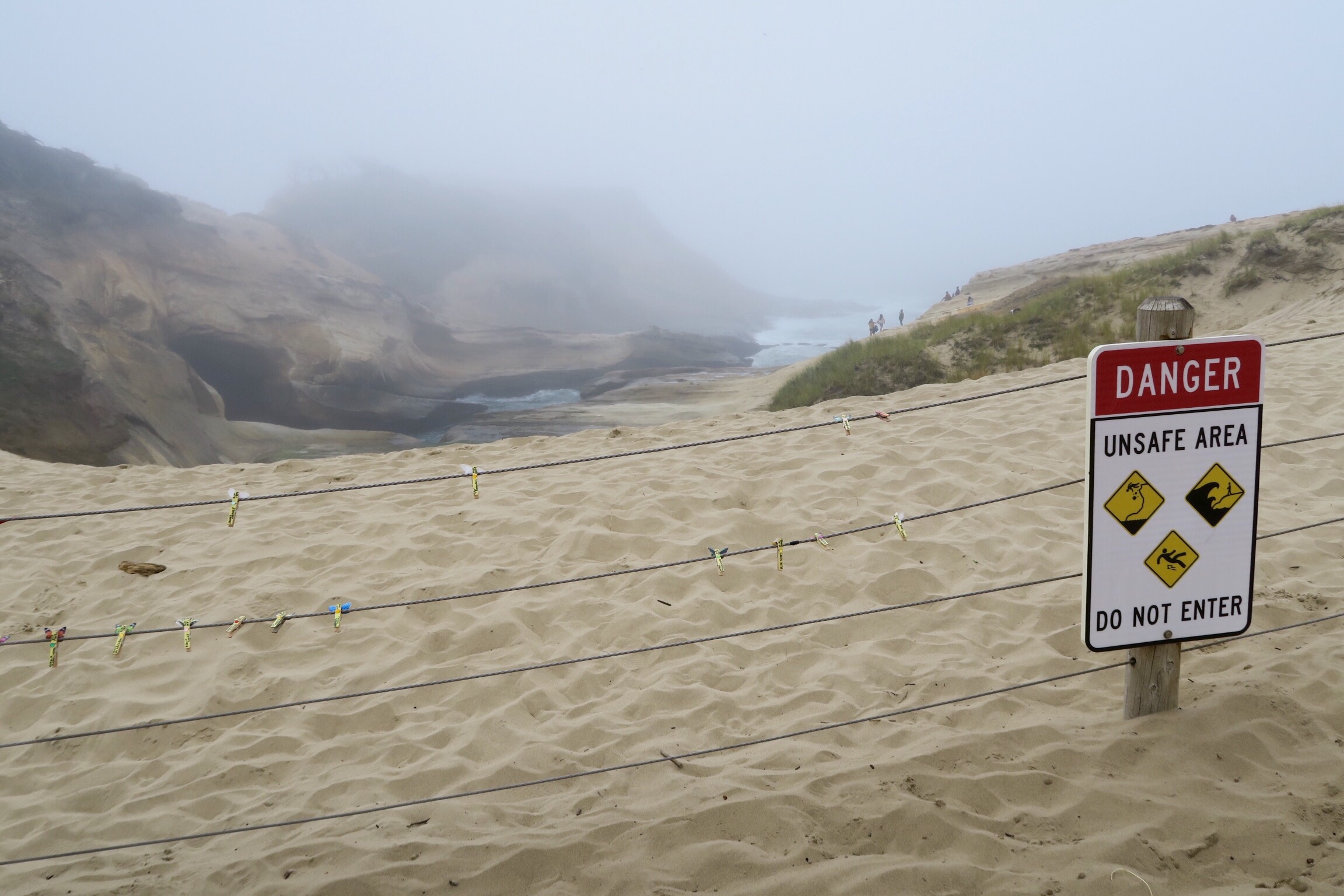 Vorher waren wir noch am Cape Kiwanda, das auch mystisch vom Nebel umhüllt wurde.