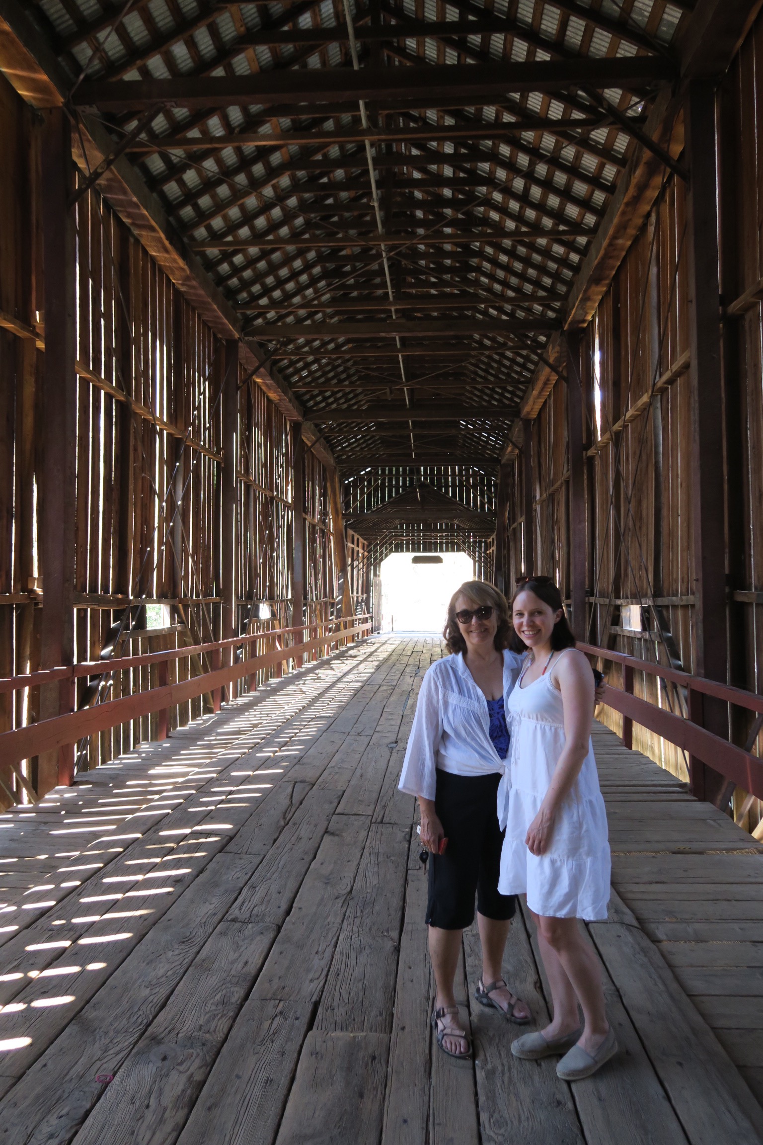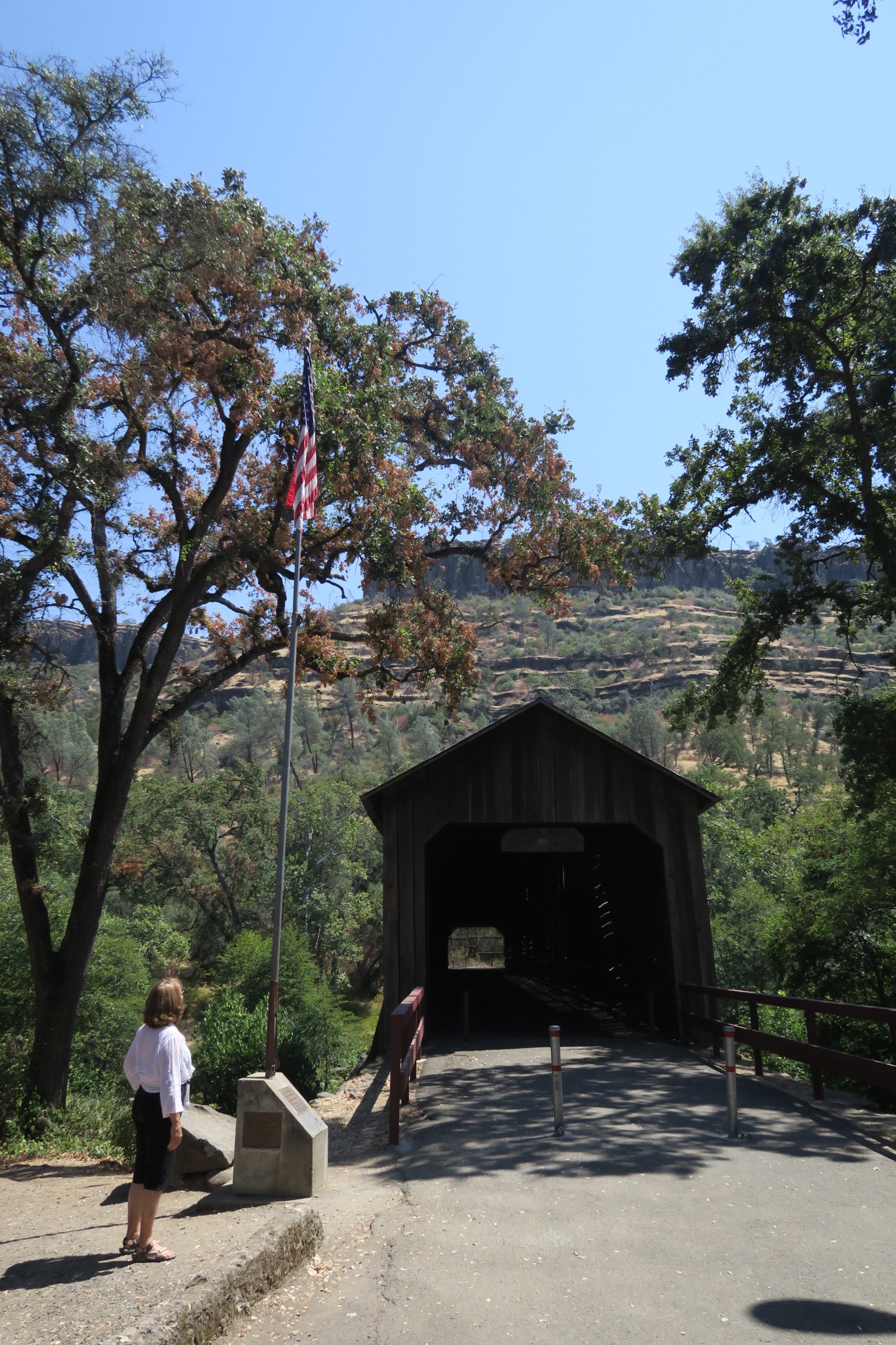 Auf dem Weg zum Canyon hoch machten wir übrigens noch einen kurzen Abstecher bei der Honey Run Bridge, der ältesten noch erhaltenen überdachten Brücke der USA, die 1894 erbaut wurde im Zuge des Goldrush, weil die Gegend interessant für Goldsucher und Miner war. P