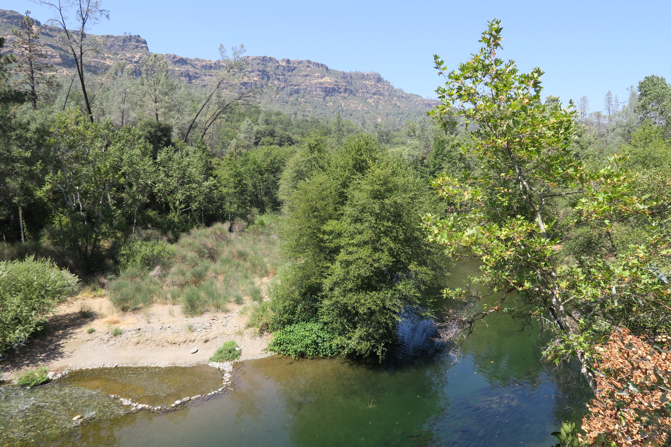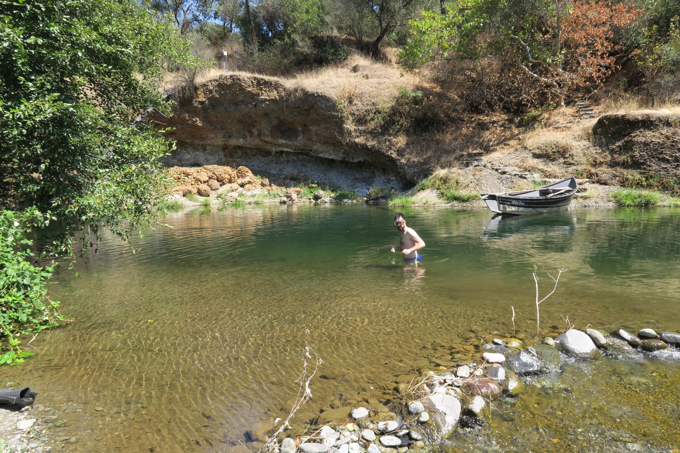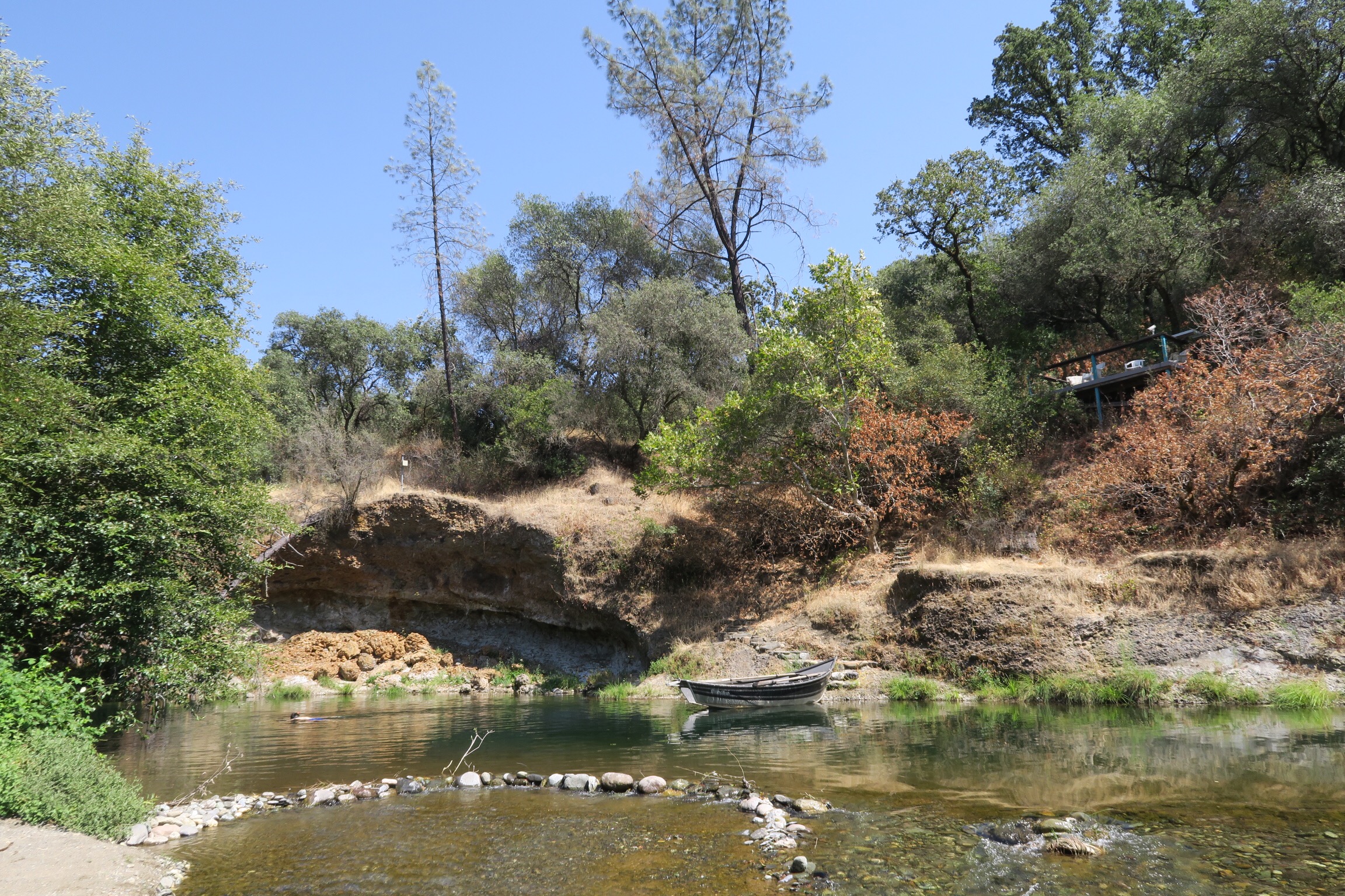 Dann kurzer Zwischenstop nochmal bei Patty daheim, Badesachen eingepackt und auf gings zu Pattys Freunden Pamela und Allen hoch in den Canyon. Die beiden haben dort vor knapp 20 Jahren ein Haus am Butte Creek gekauft, einem der letzten Plätze in Kalifornien, wo es noch Lachse gibt. Damals waren es noch wenige, aber dank Allens Einsatz und ein paar glücklicher Zufälle gibt es nun wieder viele Lachse dort.