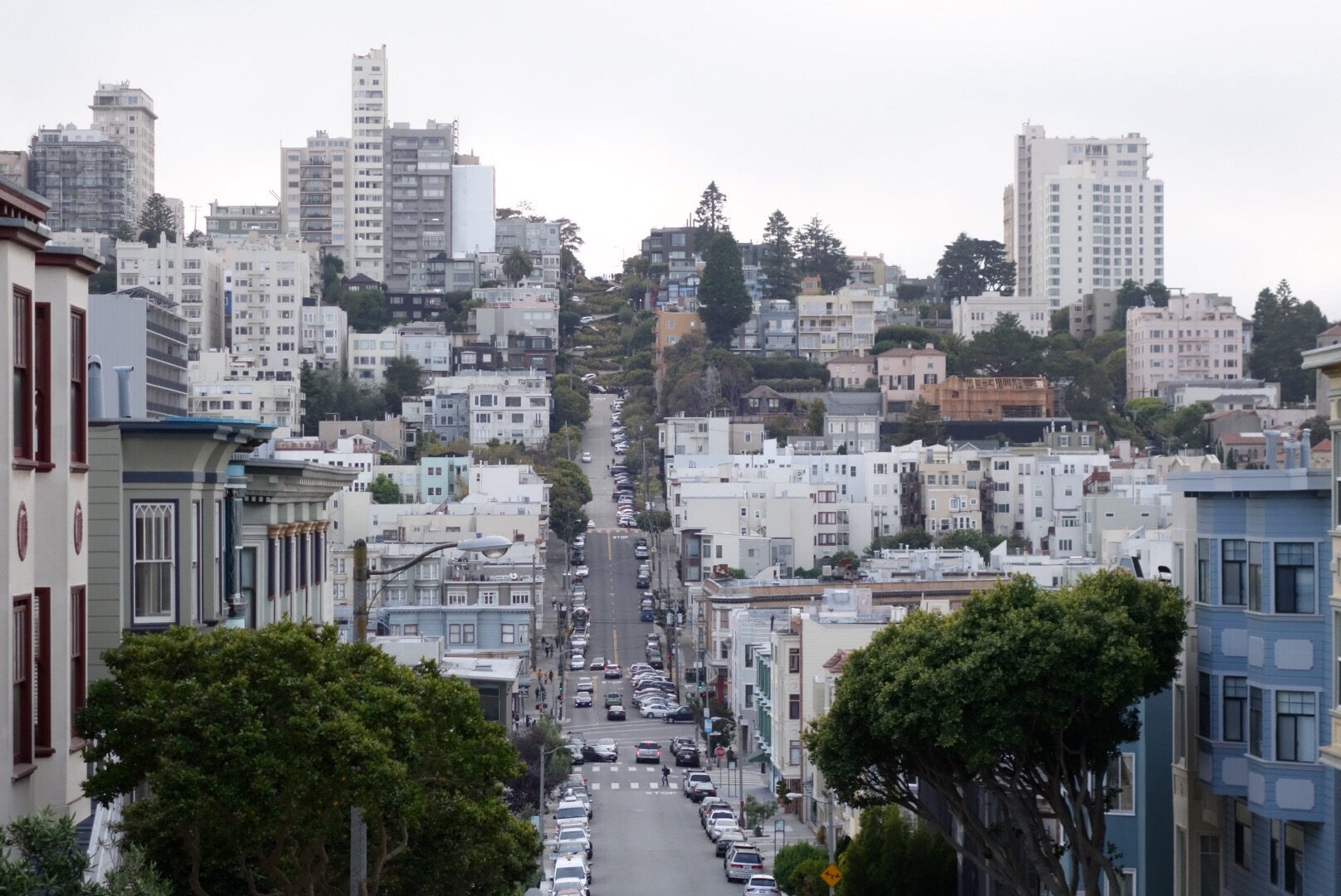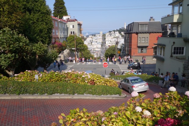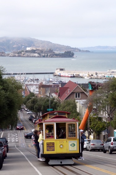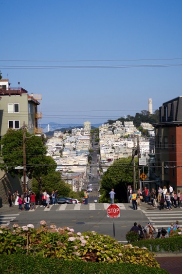 Und dann sind wir einfach mal drauf los gelaufen, Columbia Street Richtung Wharf und dann links in die Lombard Street hoch, die ich noch vom letzten Mal kannte und deren Faszination, den die Straße für alle möglichen Touris hatte, wir nicht so ganz nachvollziehen konnten. Aber man hat von dort oben eine schöne Aussicht. Immerhin.