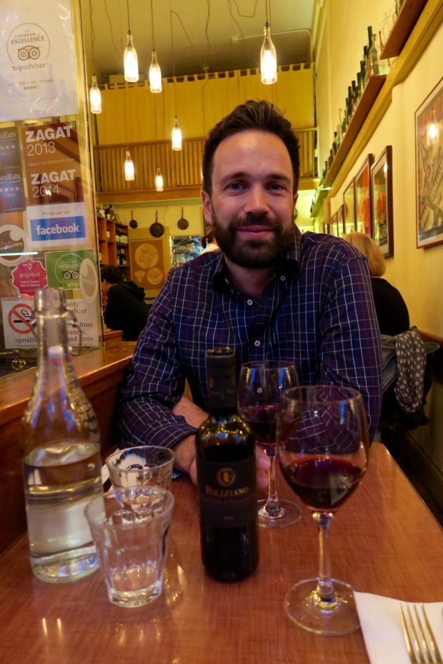 Da wir an der Grenze zu North Beach sind (scheint das Italienerviertel zu sein) wollten wir abends italienisch essen gehen, aber die ersten beiden Restaurants, die wir im Internet rausgesucht hatten, waren voll und draussen warteten jeweils ca. 10 Leute. Also spontan umdisponiert und einen tollen Platz im L’Osteria del Forno bekommen.