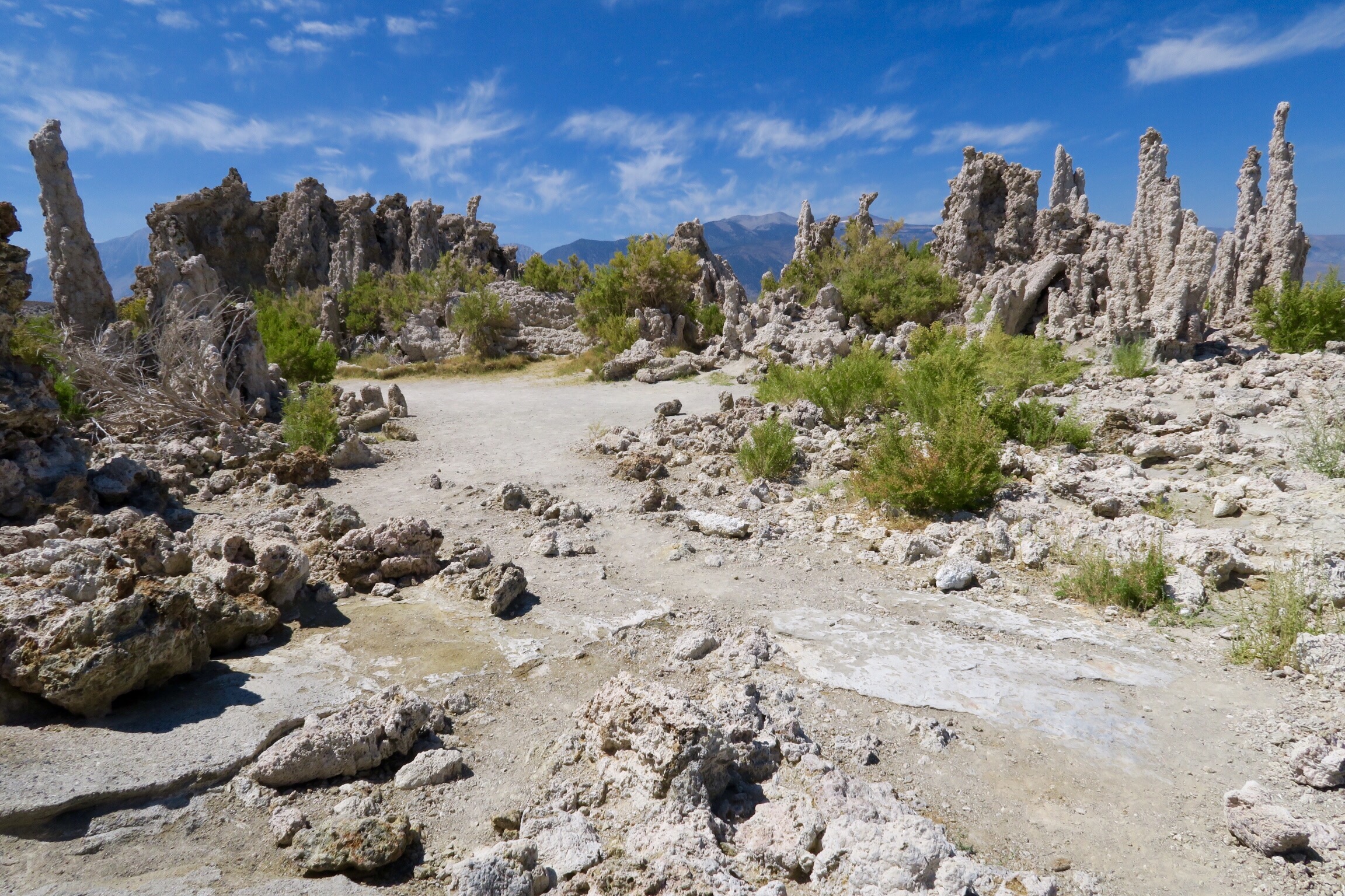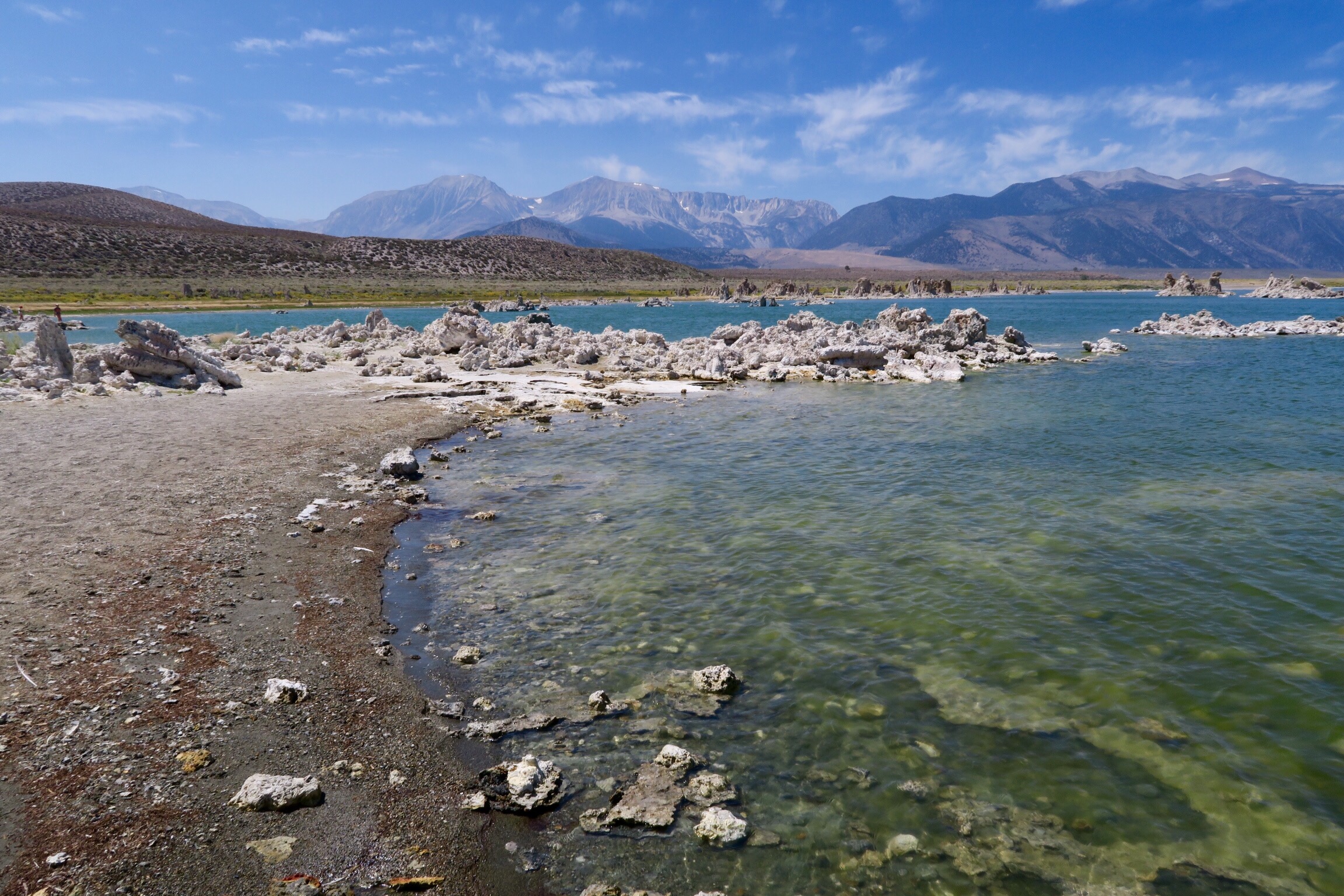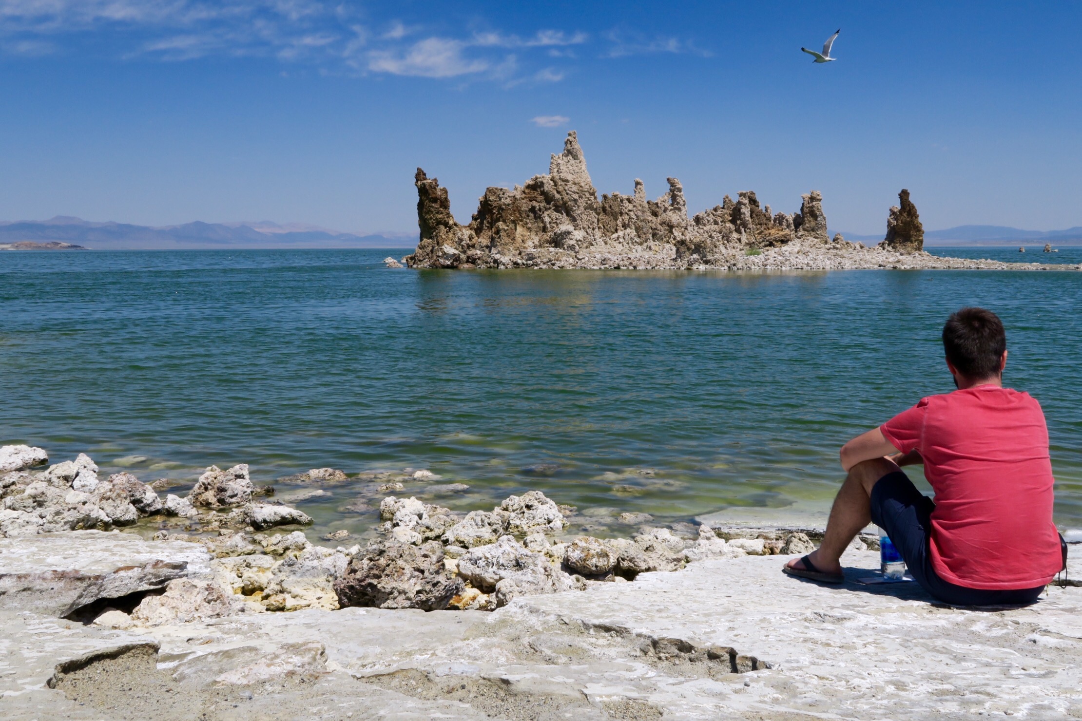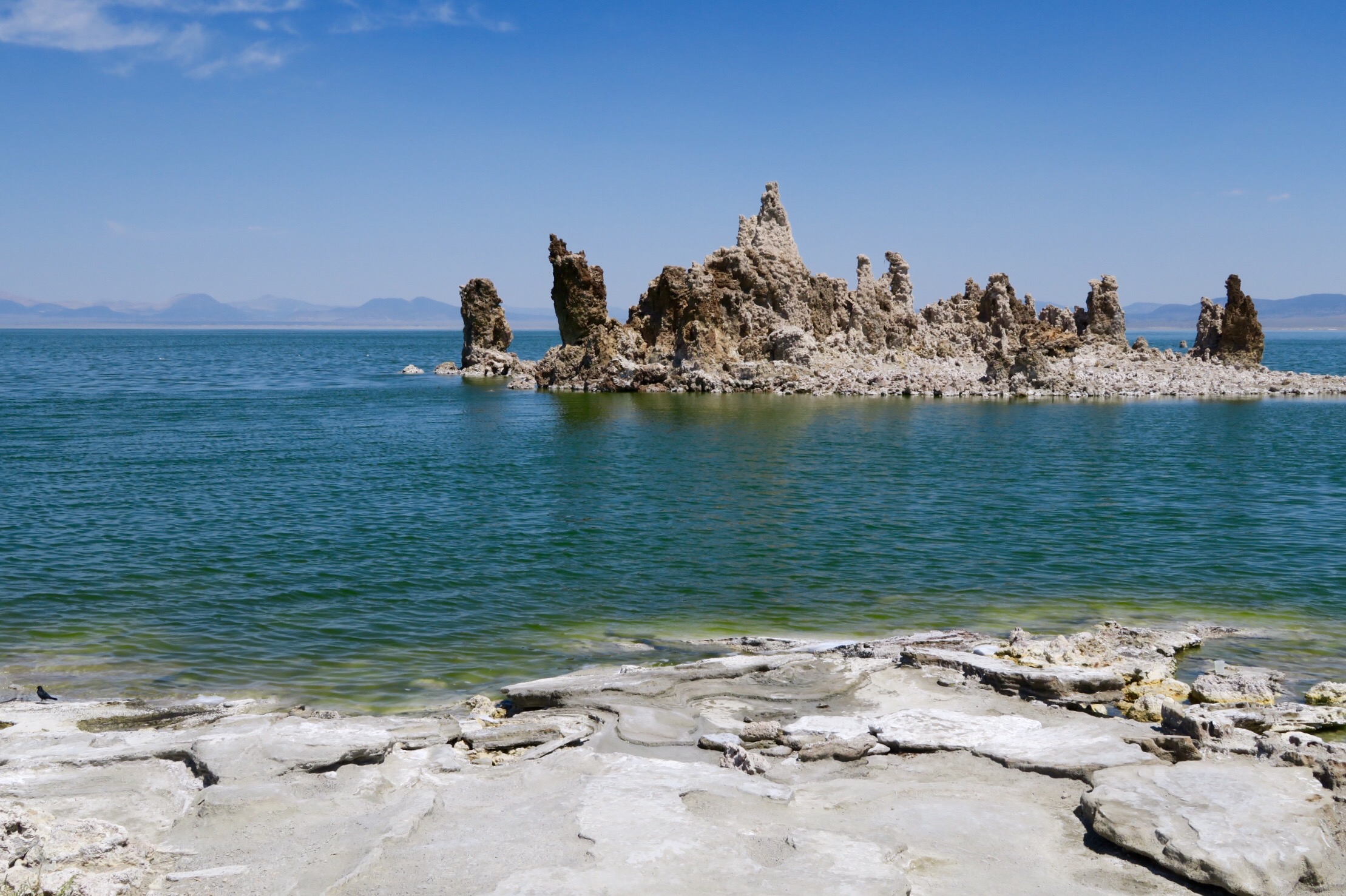 Mono Lake ist mittlerweile 2-3 Mal so salzig wie der Pazifik, da das Wasser früher bis Los Angeles abgeleitet wurde und der Wasserpegel um 13m gesunken isf. Seit er geschützt wird, steigt der Pegel langsam wieder an. Die lustigen Steinhaufen sind übrigens Kalktuffgebilde, die unter der Wasseroberfläche aus Quellen entstanden. Jetzt wisst ihr Bescheid.