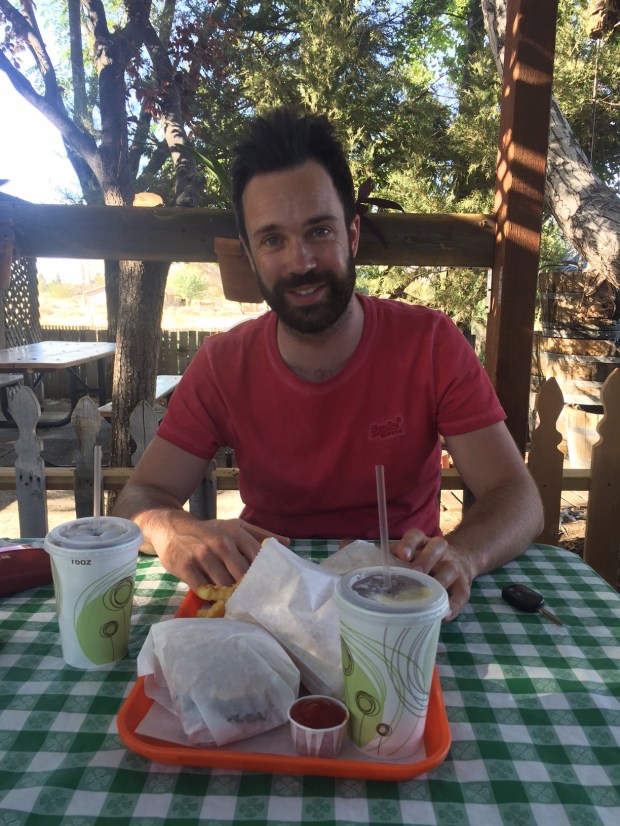 Irgendwann kam dann der Hunger und in einem weiteren 500 Seelen Ort blieben wir dann doch wieder an einem Burgergrill stehen. Nicht, dass es was anderes geben würde. Aber war wirklich gut und hatte einen netten Garten zum sitzen.