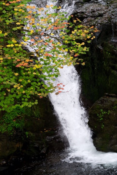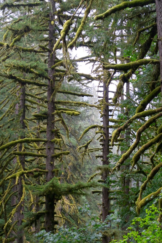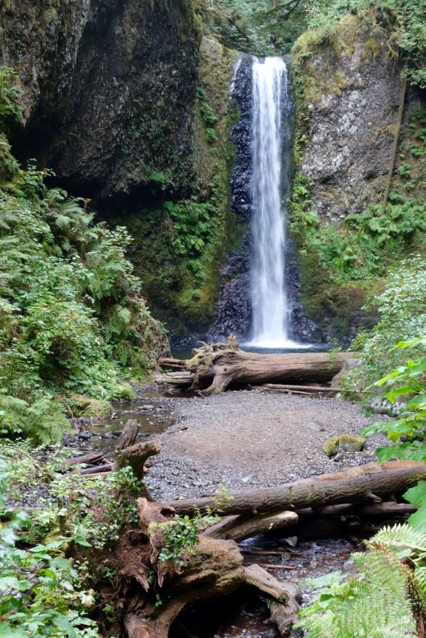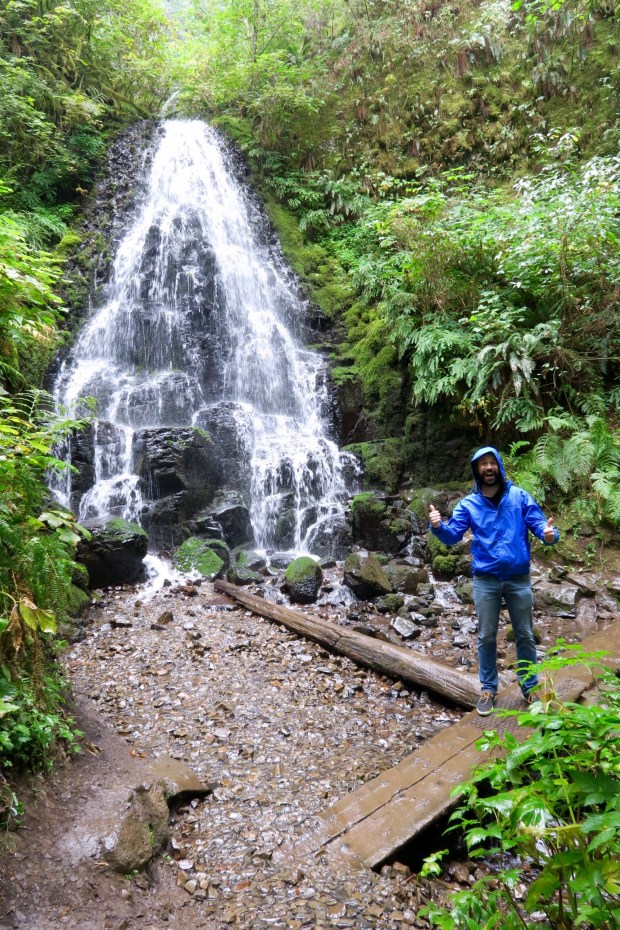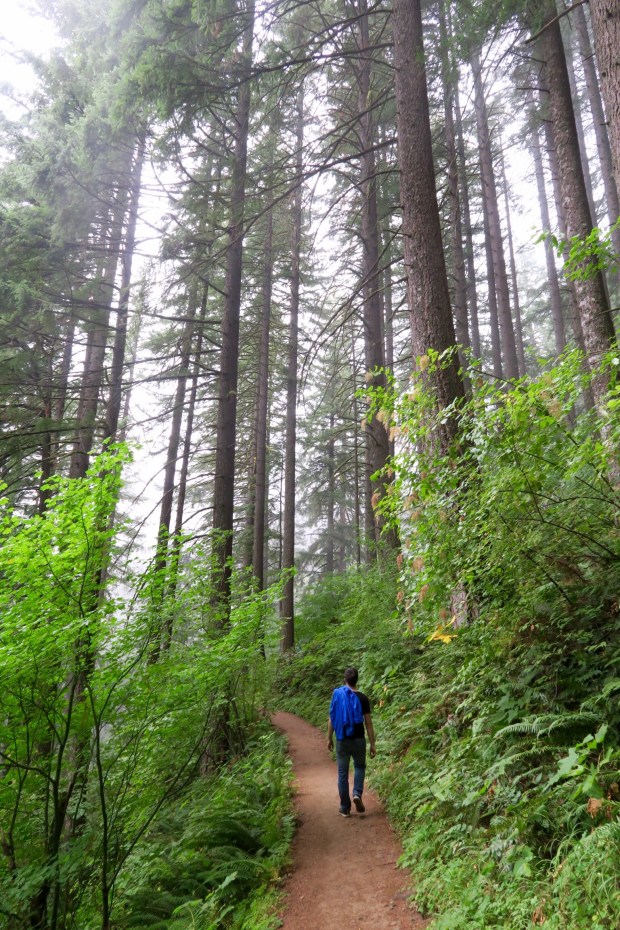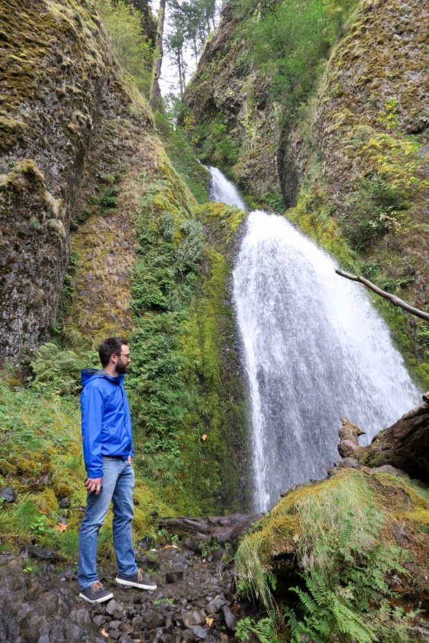 Dann gings los Richtung Columbia River Gorge und Wahkeena Falls, gleich neben den Multnomah Falls. Theoretisch zumindest. Das Wetter war leicht neblig und es nieselte ein bisschen.