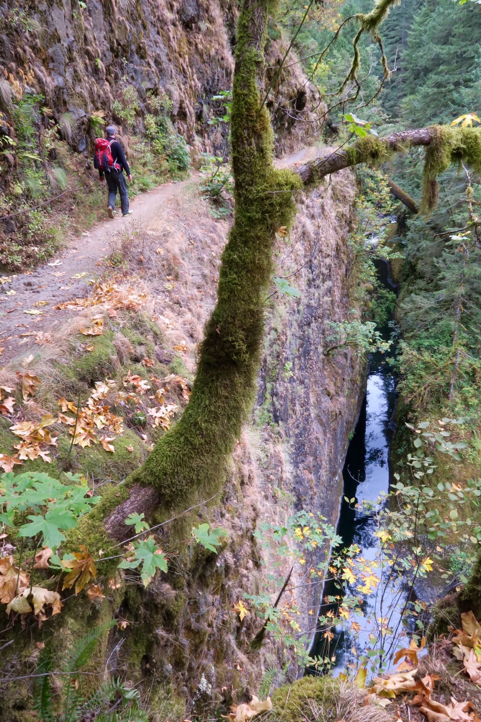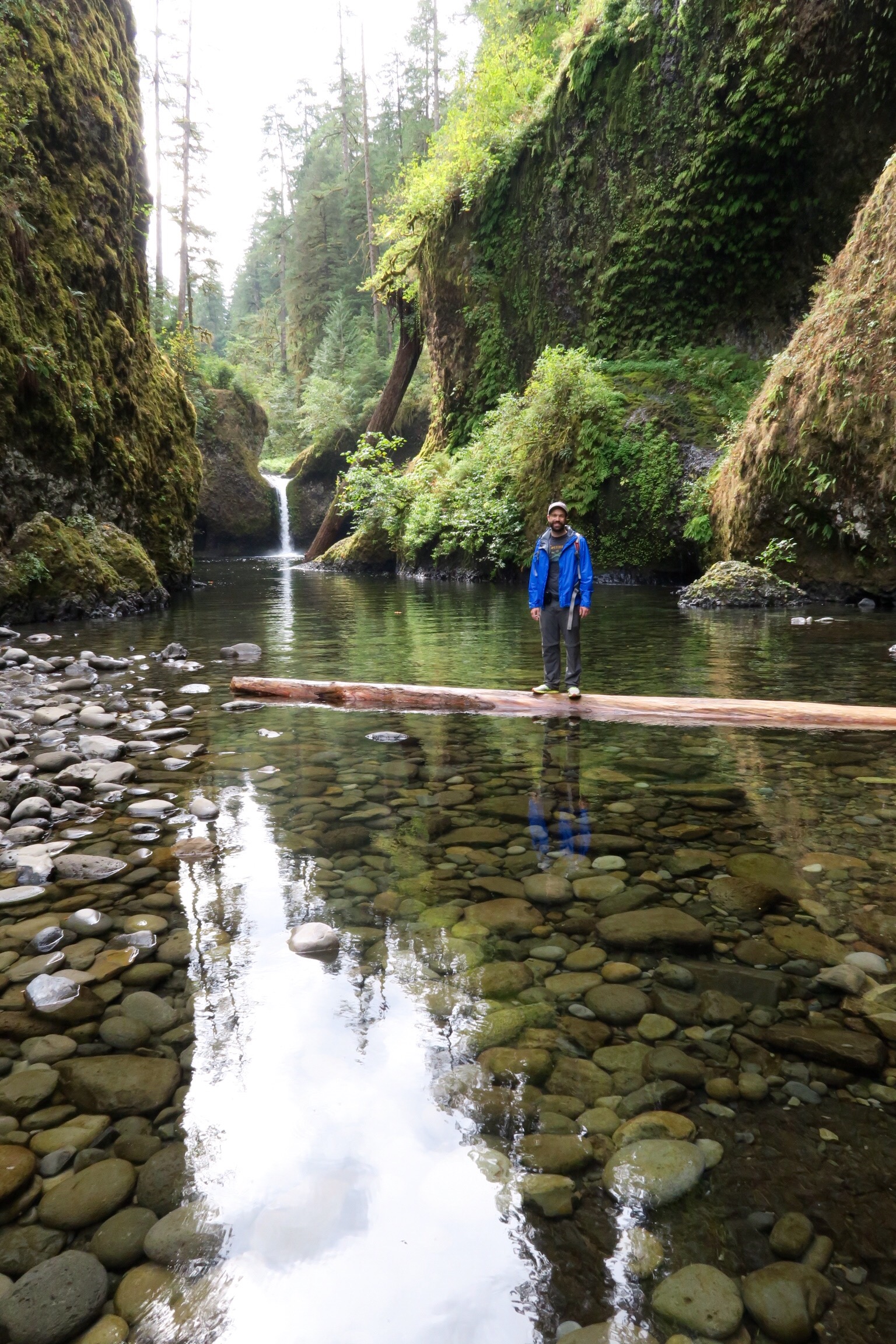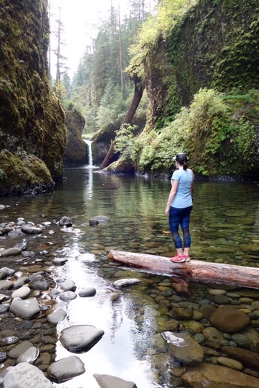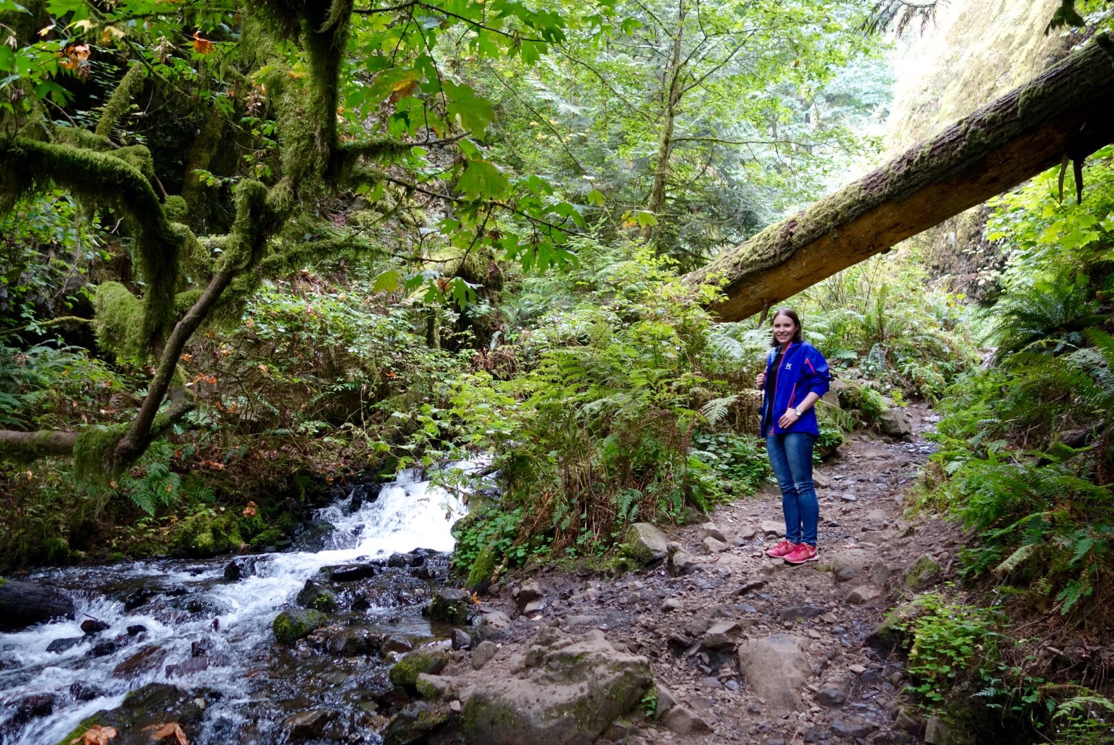 Die Nacht war überraschend gut und frühstücken konnten wir auch wieder draussen, bevor wir nach knapp 10 Stunden Schlaf runter zum Eagle Creek Trailhead fuhren und am Bach entlang bzw an der Klippe entlang bis zu den Punchbowl Falls und zur Higher Bridge liefen. Super schöner Weg und 6,6 Meilen insgesamt.