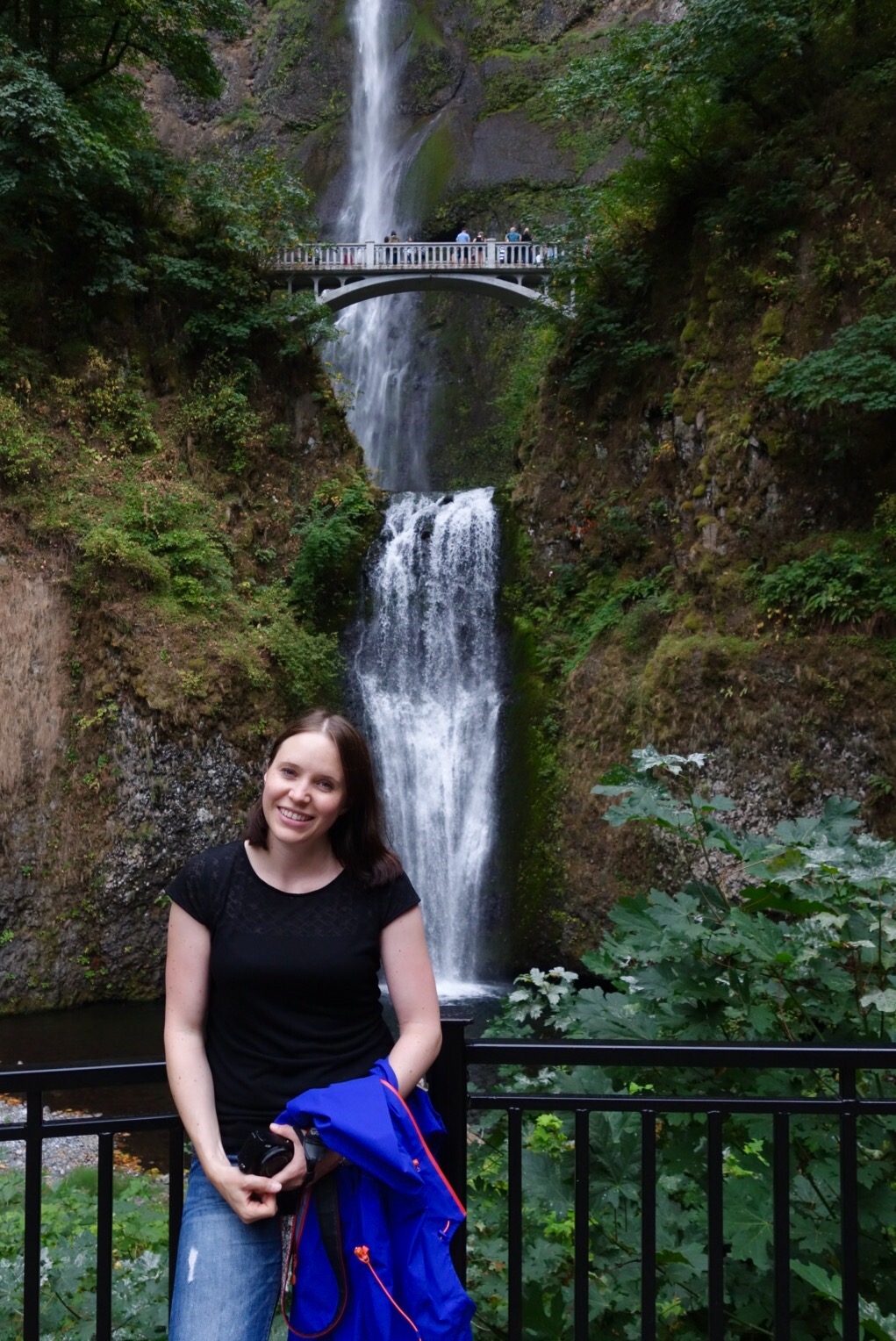 Dann habe ich den Fehler gemacht, zu fragen, ob dieser eine Weg da rüber geht zu den Multnomah Wasserfällen und der junge Kerl bestätigte dies und dass man dann am Schluss unten nur nen halben Kilometer wieder an der Straße entlang zurück läuft. Mhm. Fast.