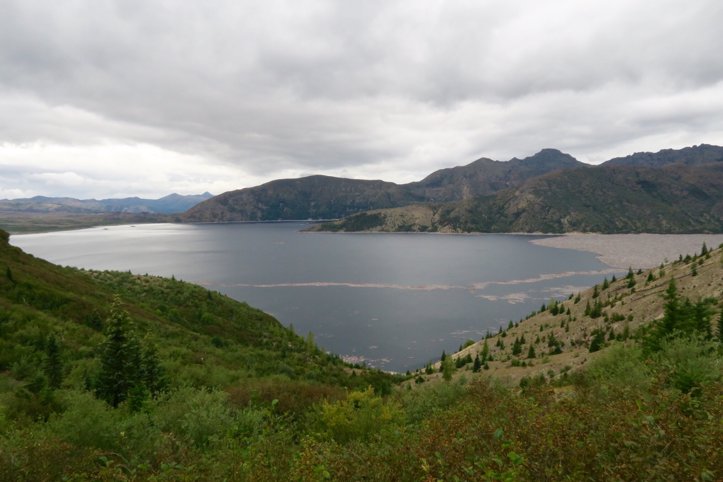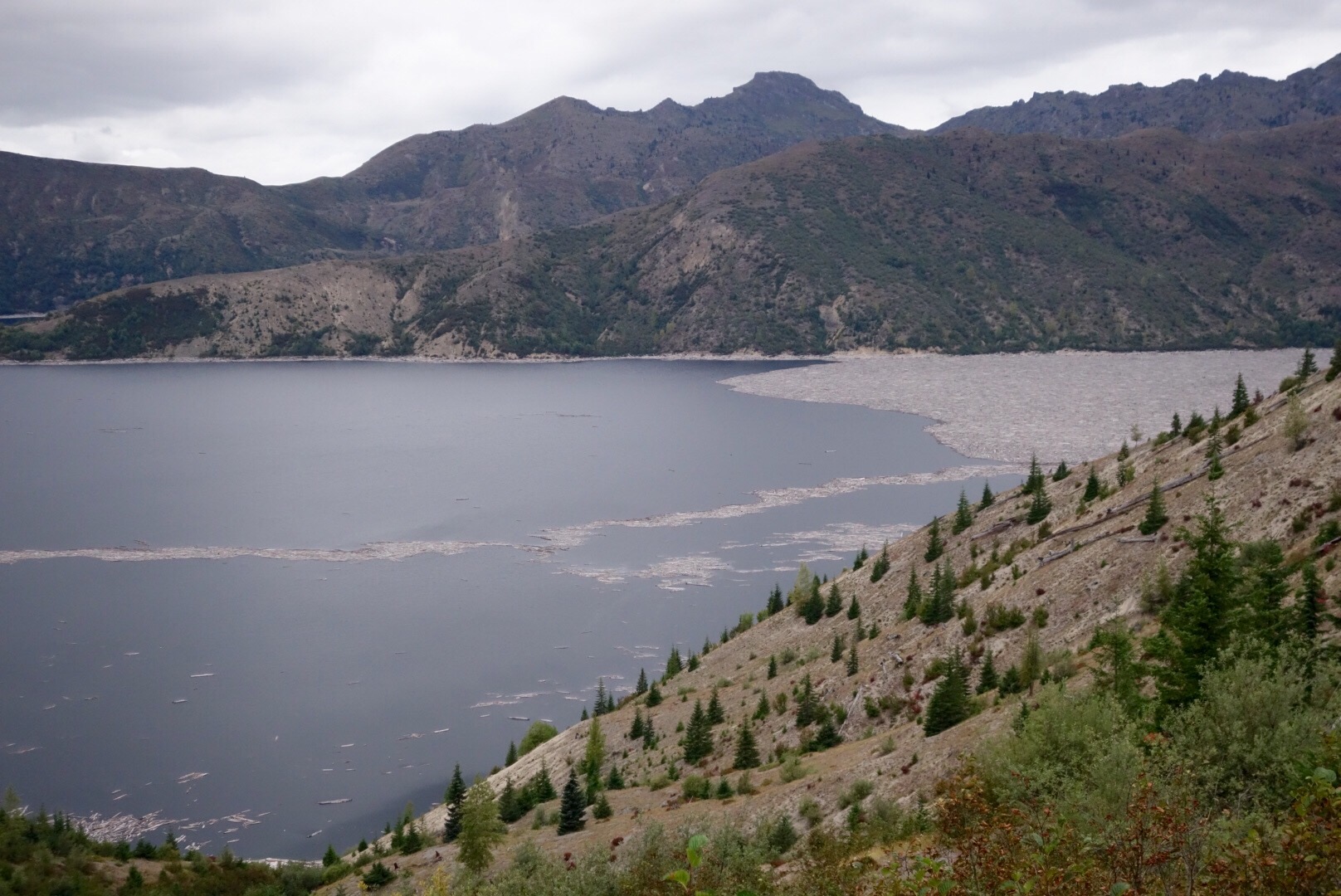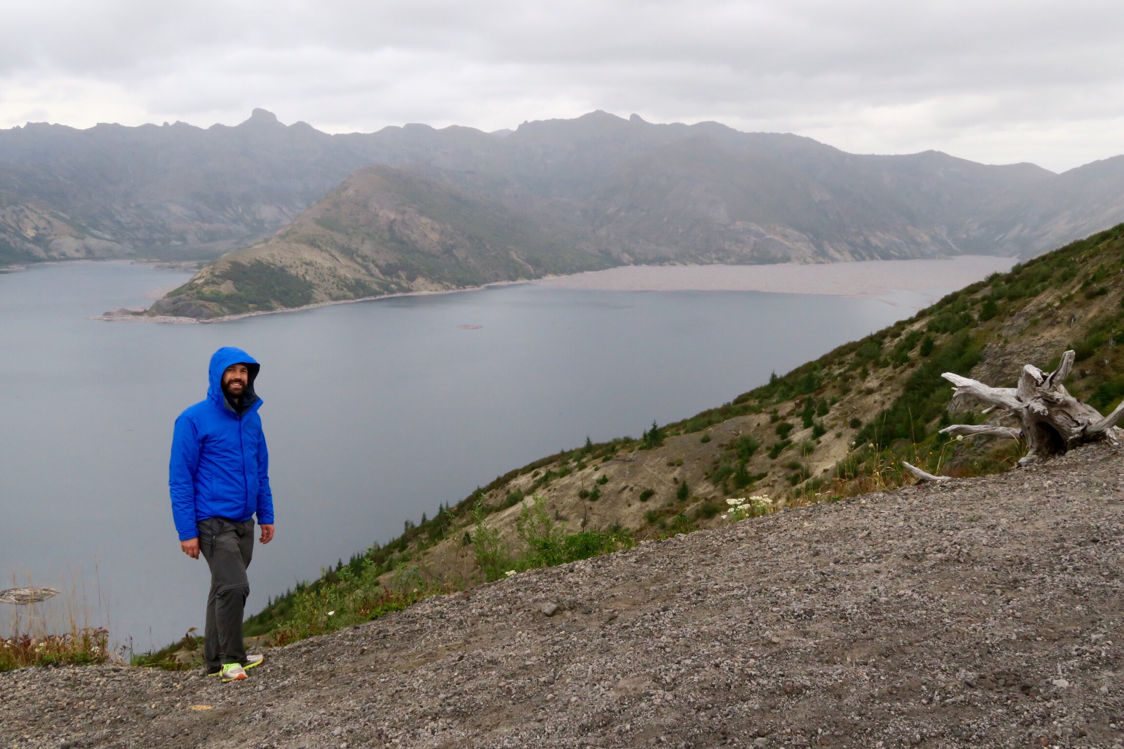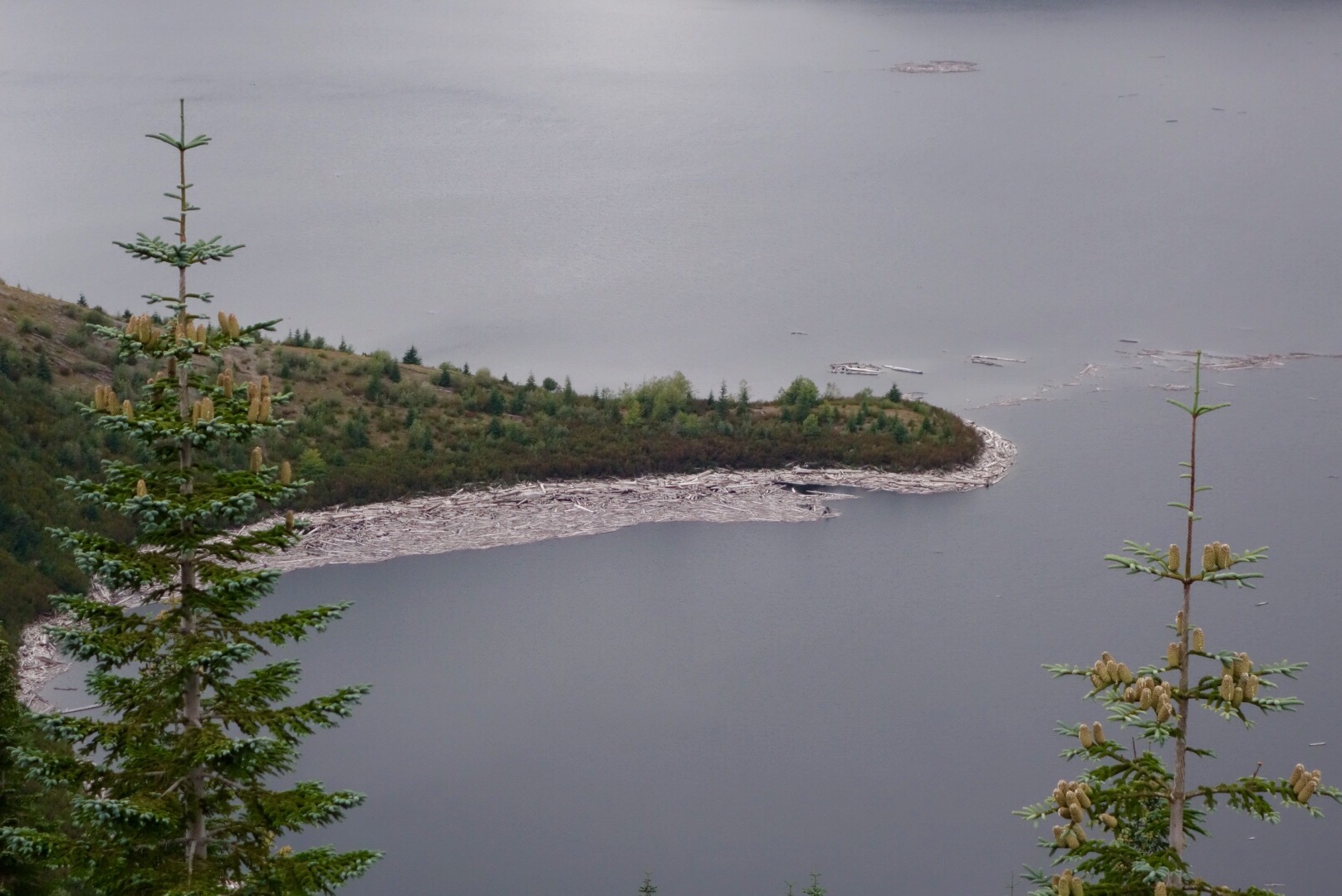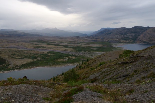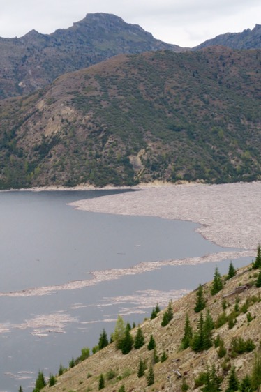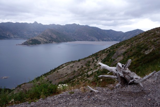 Am 18. Mai 1980 war der Vulkan ausgebrochen und hat eine Schneise der Verwüstung hinterlassen. Am meisten „beeindruckt“ haben uns die zahllosen Baumstämme im Spirit Lake, der sich bei einem Erdrutsch erst 800ft gehoben hat und dann beim Runterfließen die schon umgemähten Baumstämme mitgenommen hat. Simon konnte es gar nicht glauben, dass die da also schon seit 36 Jahren drin schwimmen.