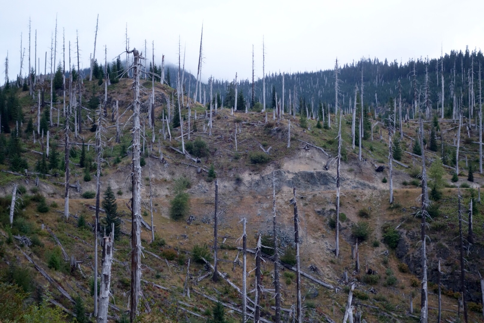 Da es grad von der Route her passte, haben wir doch noch beschlossen den Mount St. Helens anzufahren, vom Osten her hinauf zum Windy Ridge Viewpoint, mit vielen weiteren Viewpoints dazwischen.