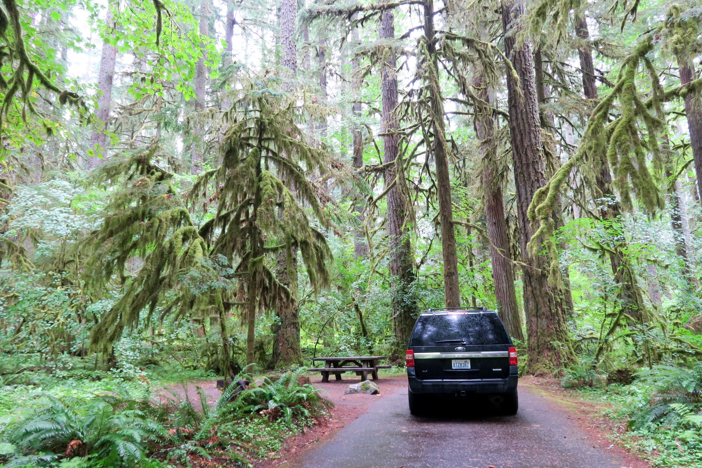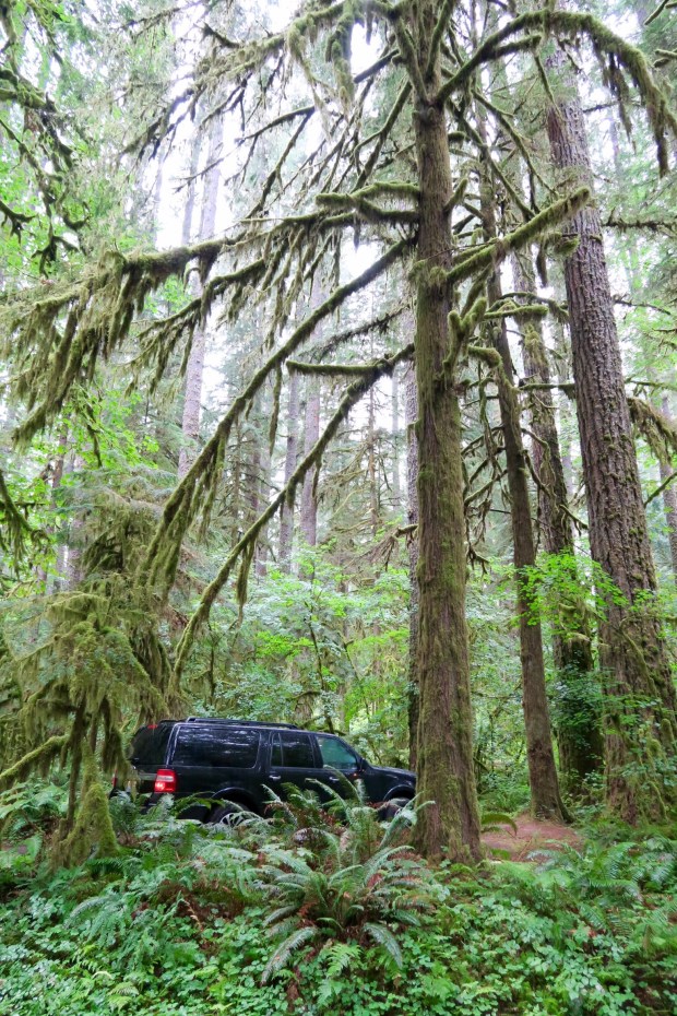 Dann sind wir gleich weiter gefahren und haben einen Campingplatz gesucht in der Nähe des Eagle Creek und der war zwar dann wegen der Straße recht laut, aber da es regnete haben wir eh im Auto geschlafen und vorher sogar gegessen. Nicht so einfach allerdings. 😅