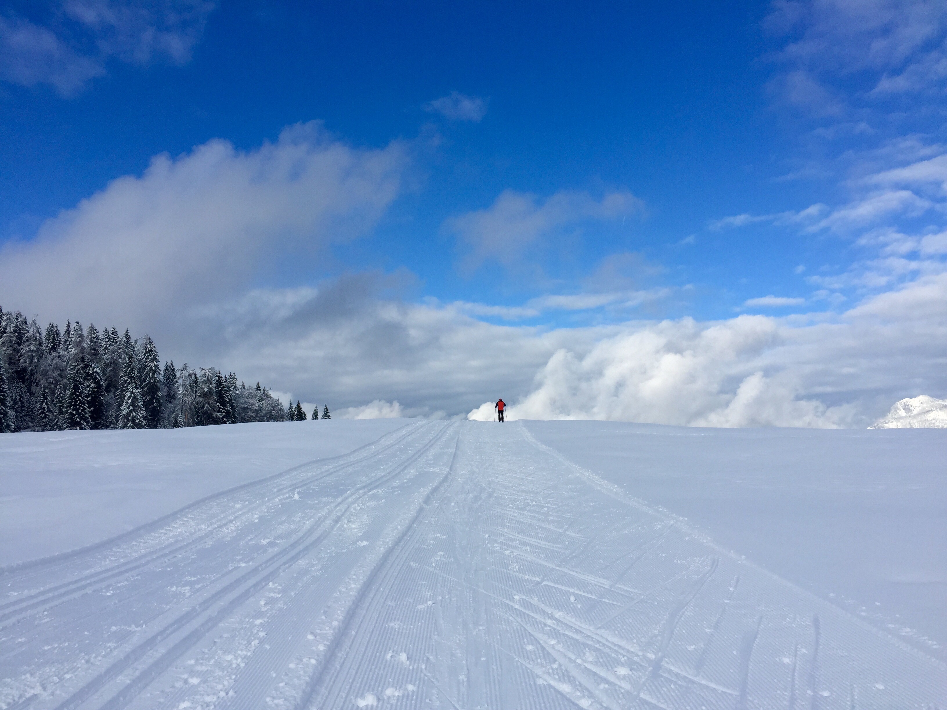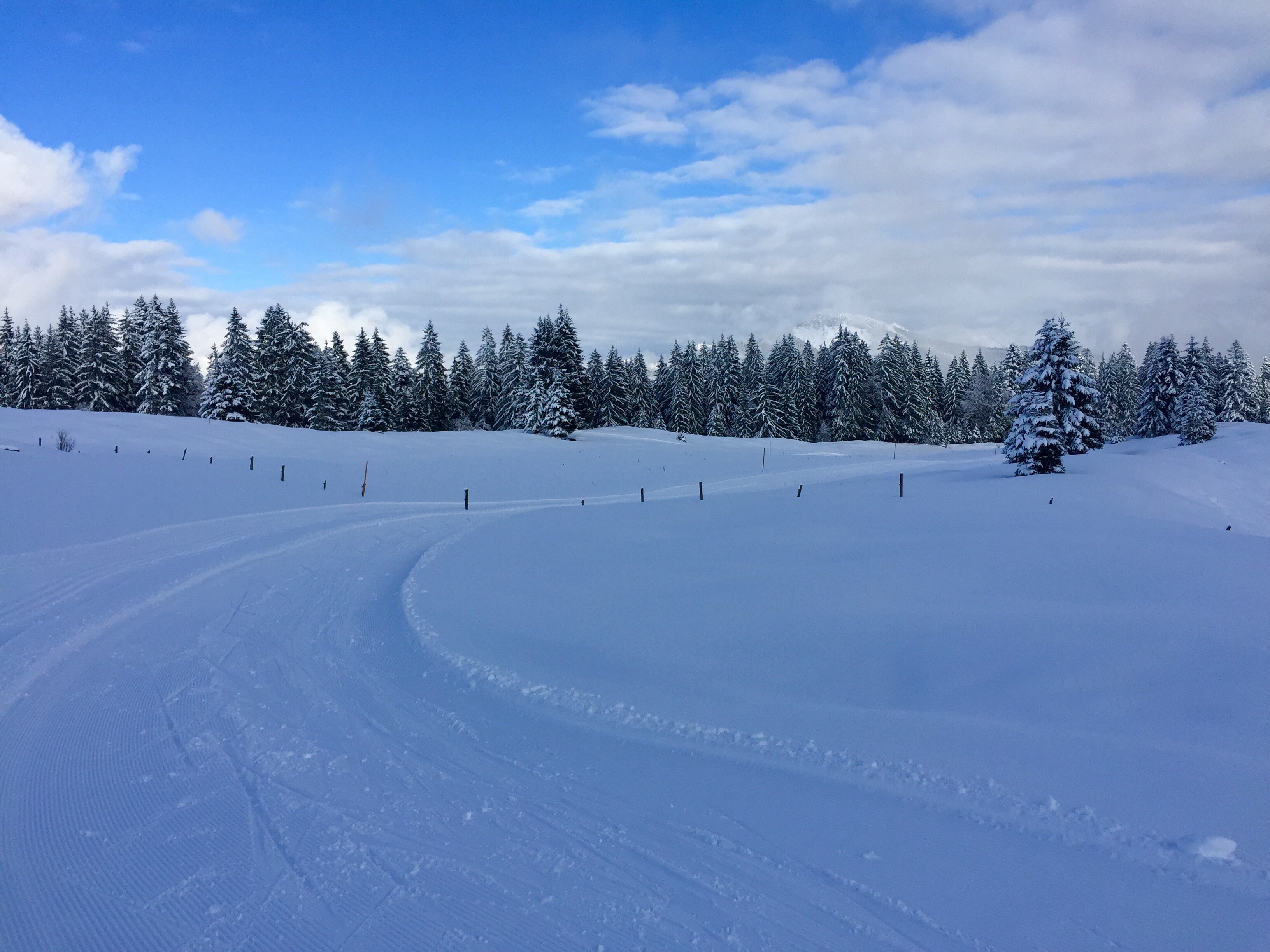 Anfangs war das Wetter noch mäßig, aber bald kam die Sonne durch und zusammen mit dem vielen Neuschnee und den ganz wenigen anderen Schneefans bot sich uns eine spektakuläre Winterkulisse!