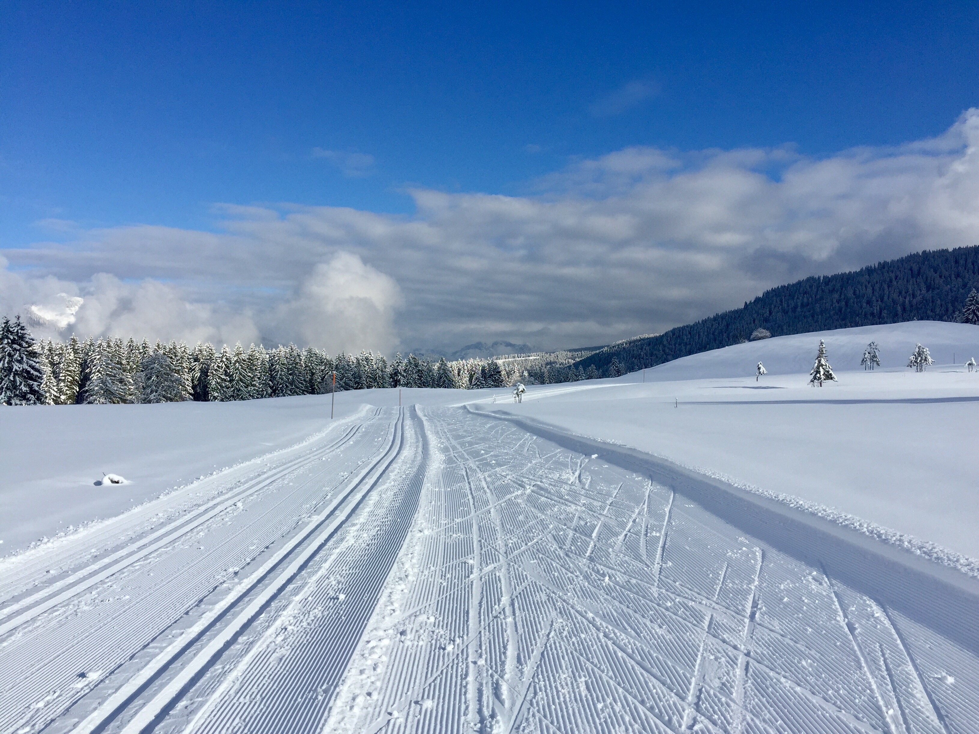 Denn wenn es derzeit in München regnet, gibts in den Bergen Neuschnee. Und zwar nicht zu knapp! 😍 Allzu weit fahren mussten wir auch nicht. Erstes Ziel und basecamp für beide Nächte war Reit im Winkl. Dort suchten wir uns für Samstag zum Skaten (unser neuer Wintersport) die Höhenloipe aus, die von der Hindenburghütte losgeht und die vom Parkplatz Blindau aus mit Allrad-Shuttlebussen (5€p.P. einfach) zu erreichen ist.