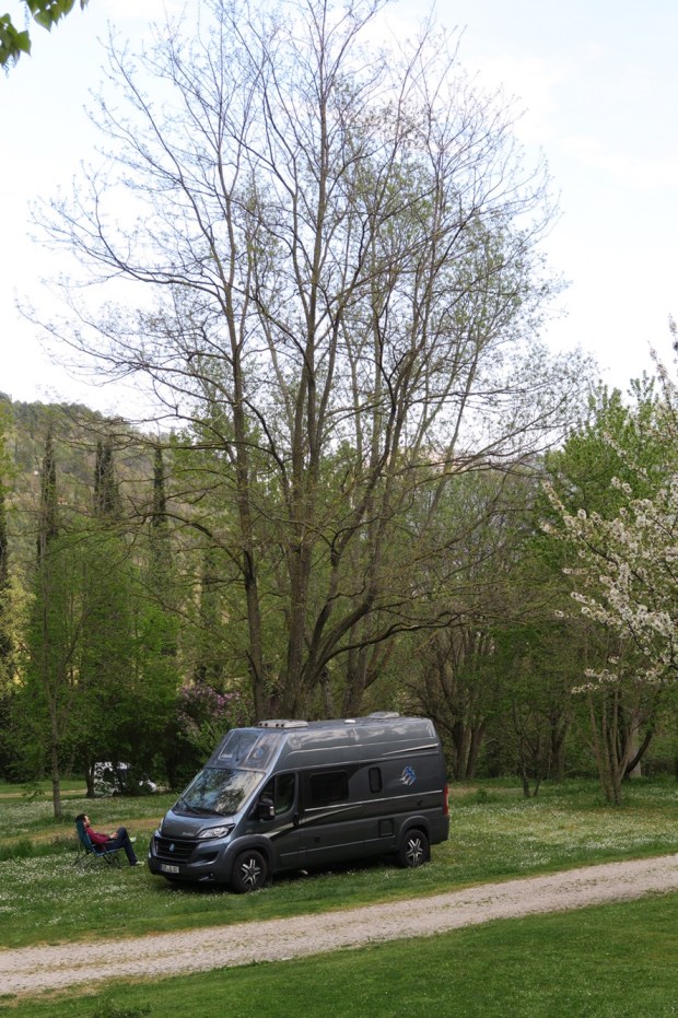 Da der Campingplatz in Sospel eigentlich nur ein Betonplatz neben der Sporthalle ist, gehts erst mal nur durch das schöne Städtchen durch und 4km weiter zum wunderschönen Domaine Sainte-Madeleine Campingplatz (20,40€), wo praktisch gar nichts los ist. Kein Plan wieso, wir fühlen uns wie in einem herrlichen großen Garten!
