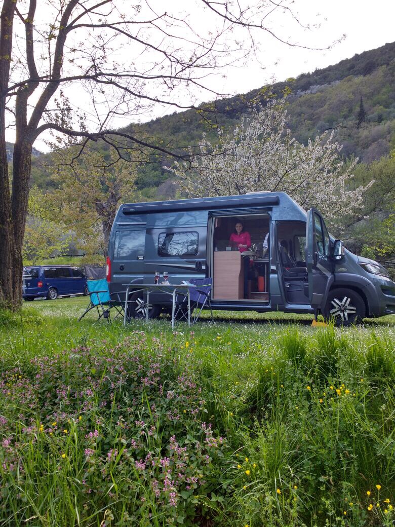 Da der Campingplatz in Sospel eigentlich nur ein Betonplatz neben der Sporthalle ist, gehts erst mal nur durch das schöne Städtchen durch und 4km weiter zum wunderschönen Domaine Sainte-Madeleine Campingplatz (20,40€), wo praktisch gar nichts los ist. Kein Plan wieso, wir fühlen uns wie in einem herrlichen großen Garten!