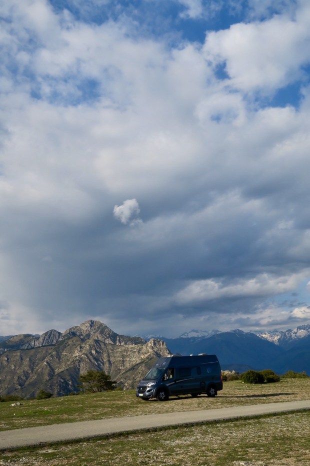 Nach Utelle hoch mussten wieder so einige Serpentinen umfahren werden und von Utelle bis zu Madonne d’Utelle rauf wurde die Straße dann quasi auch noch einspurig. 😱 Aber was tut man nicht alles, wenn man dann einen Stellplatz ganz für sich allein hat, mit so einer Aussicht?!