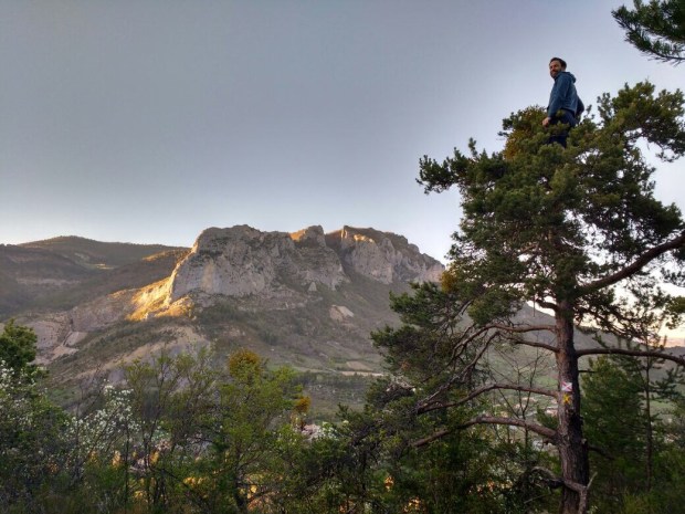 Orpierre selber ist bekannt unter Kletterern und der Campingplatz den wir ansteuern tatsächlich schon fast voll, aber wir haben noch einen super Platz bekommen, neben ganz viel blühendem Flieder (wenn schon der Lavendel noch nicht blüht) und mit super Sicht auf die Berge!