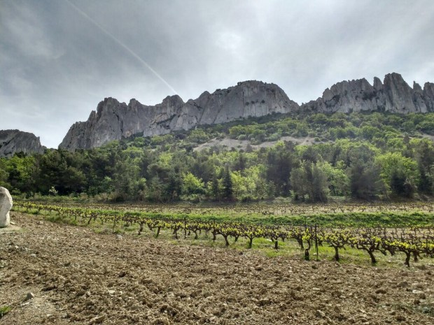Also ging es zunächst mit dem Womo nach Gigondas, mitten in einer wohl recht ergiebigen Weinregion, in der Nähe kennt man zumindest den Ort und nach ihm benannten Wein Chateauneuf-du-Pape. Die Weinreben sind alle sehr niedrig, aber schon fleissig am austreiben.