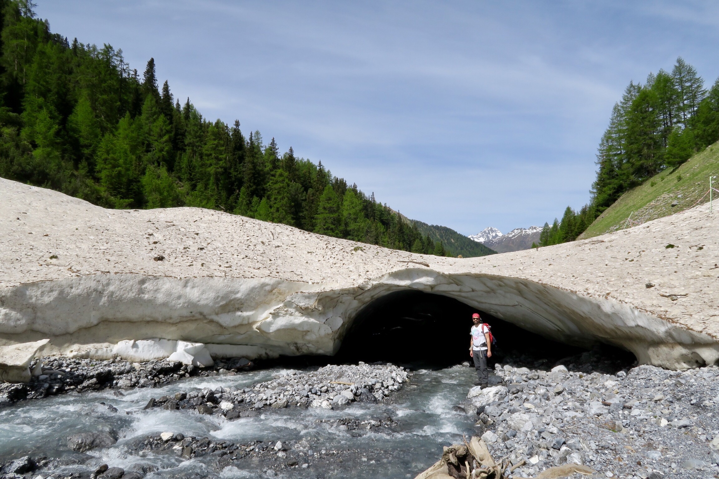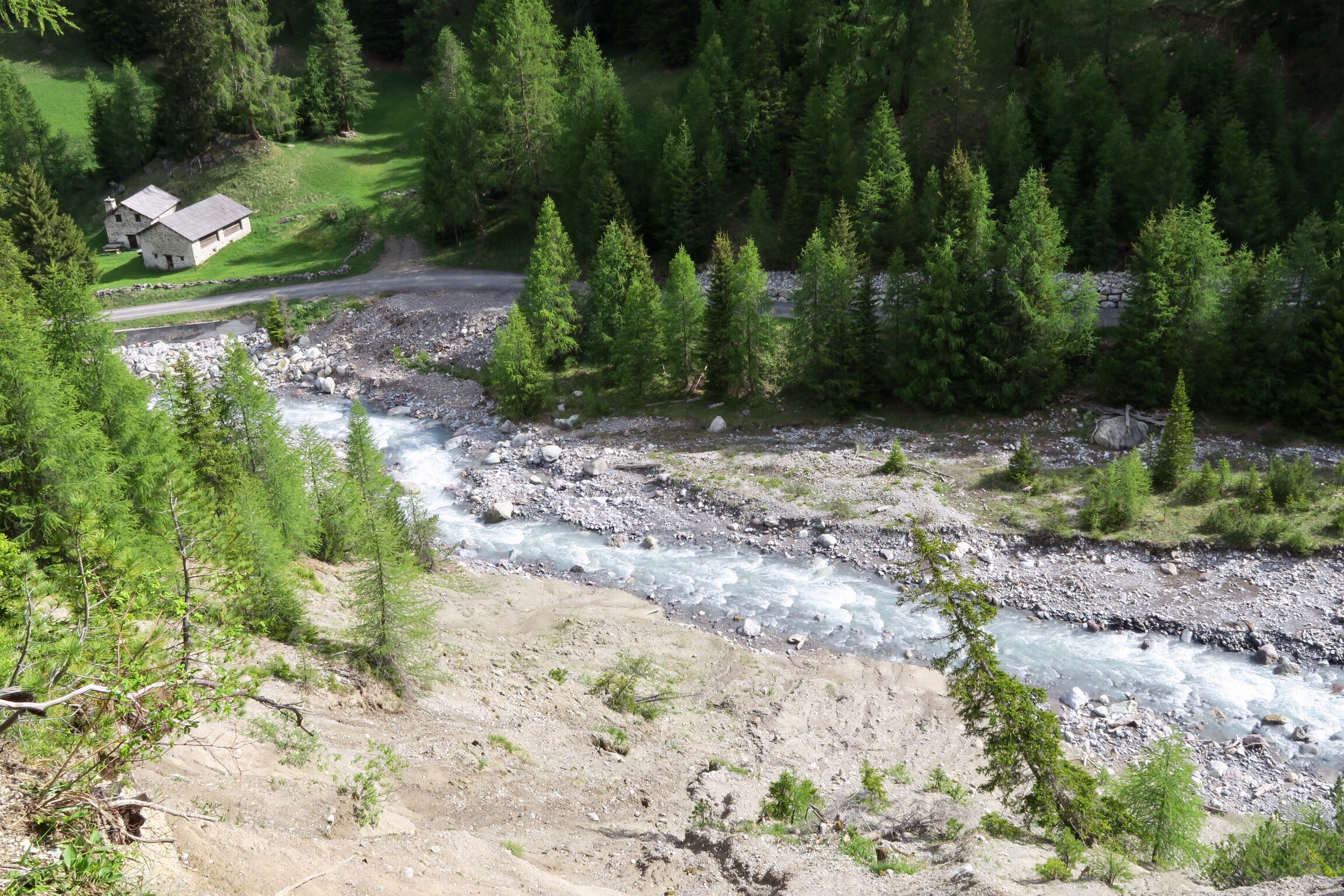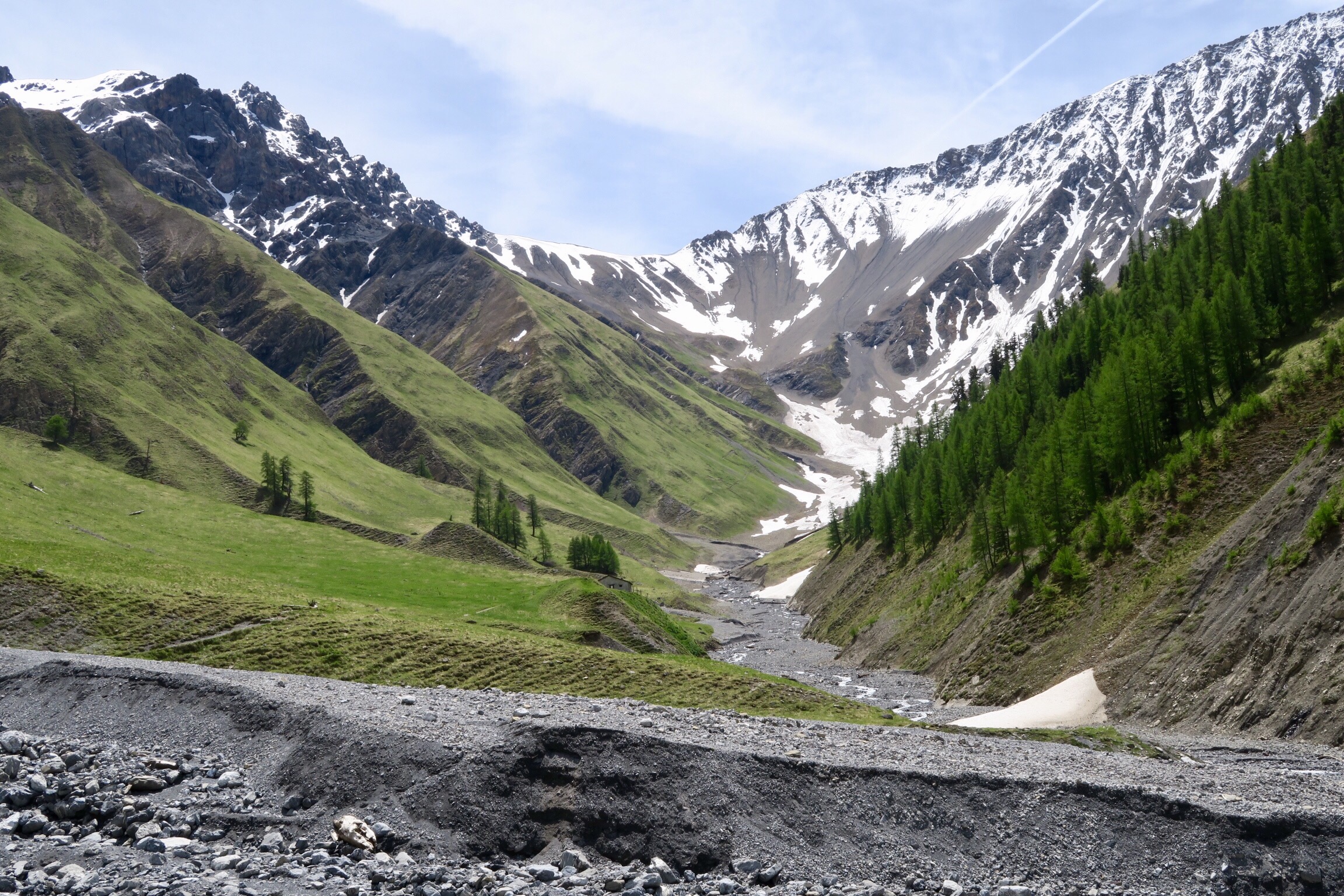 Auf dem Foto oben erkennt mans nicht, aber dank dem Fernglas von den sehr netten Schweizern konnten wir ganz hinten auf dem begrasten Felsen Steinböcke beobachten. Die sind wohl um die Jahreszeit schon weiter im Tal sonst.
