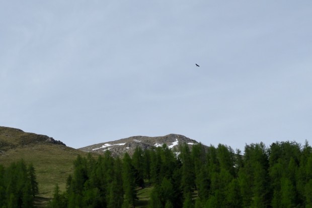 Das könnte einer von den hier lebenden Bartgeiern sein, oder aber ein Adler. Auf jeden Fall ein wirklich großer Vogel 😉