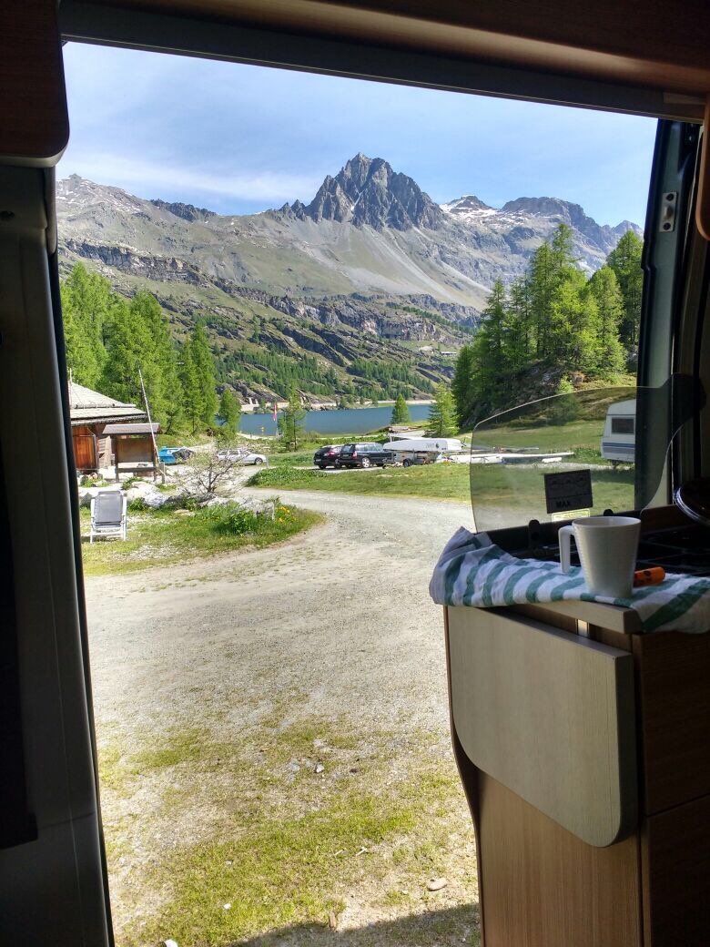 Toller Bergblick, nette Besitzer, kaum Wind und super saubere Sanitäranlagen. Dafür kostet halt ein Campingplatz in der Schweiz pro Nacht auch mal 40€… und ich war heute das erste Mal kurz ein paar Sachen wie Milch und Brot und Eier in einem Supermarkt kaufen und musste wirklich staunen wie unglaublich teuer alles ist… aber das hatte man ja vorher gewusst und deswegen alles andere an Vorräten mitgenommen. 😅