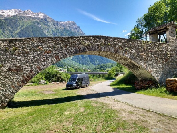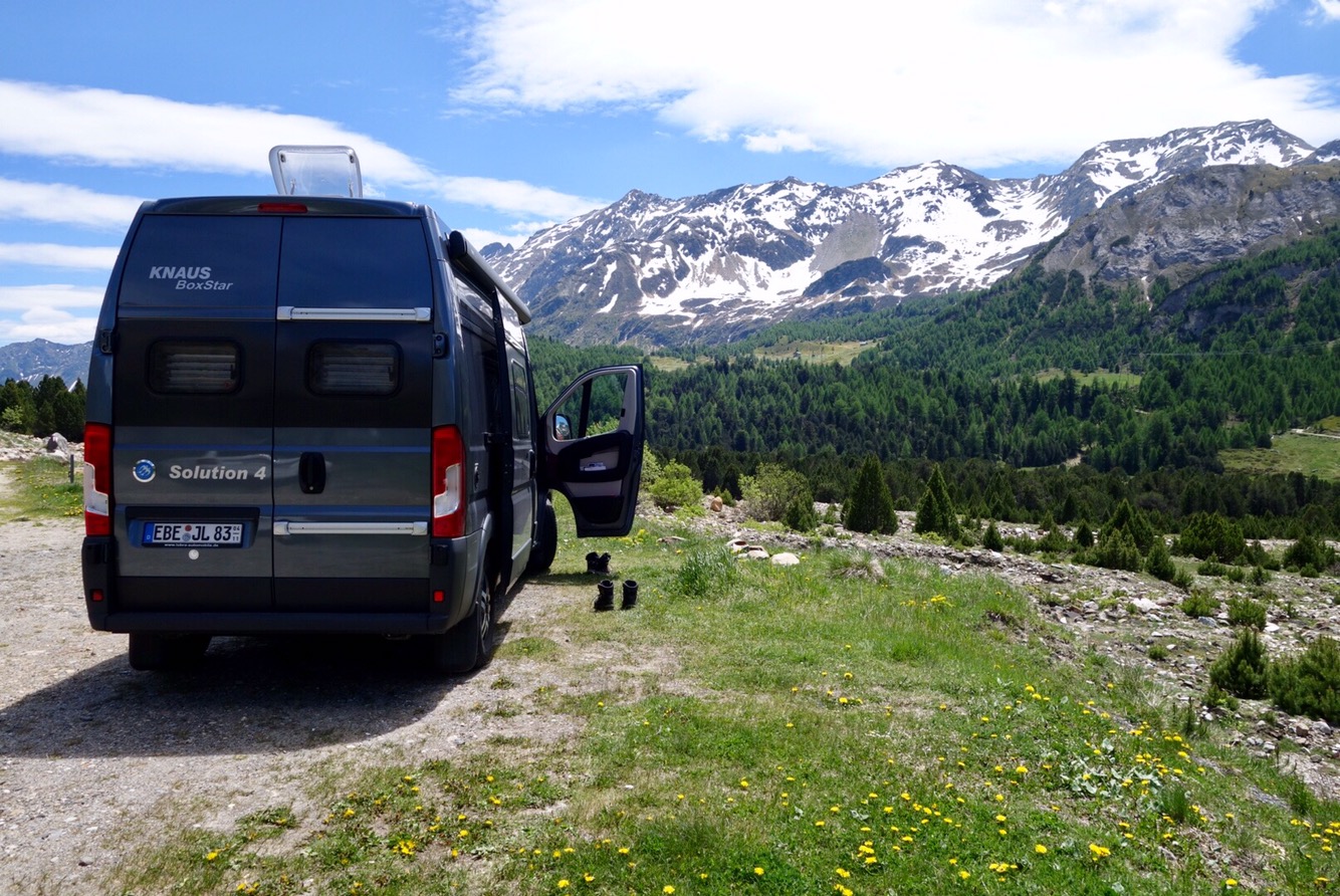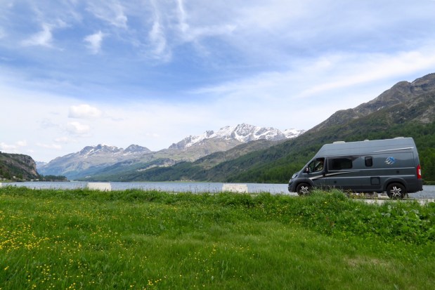 Nachdem wir also gestern am Silser See Campingplatz frisch geduscht und mit vollem Wassertank gestartet sind…
