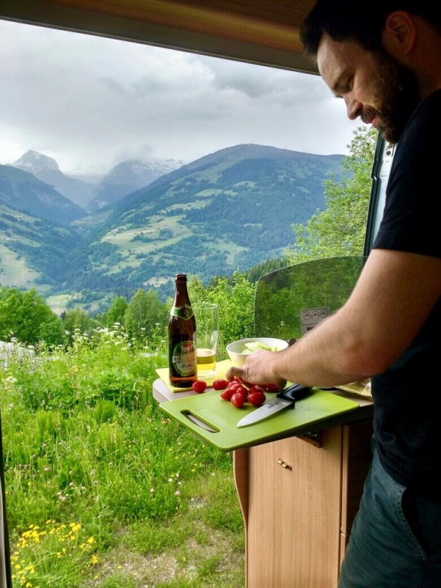 Simon kochte (wie fast immer im Urlaub 😉) und ich kämpfte mich in meinem Ian McEvan Roman Nutshell voran, während die Berge und Wolken ein abwechslungsreiches Spektakel boten.