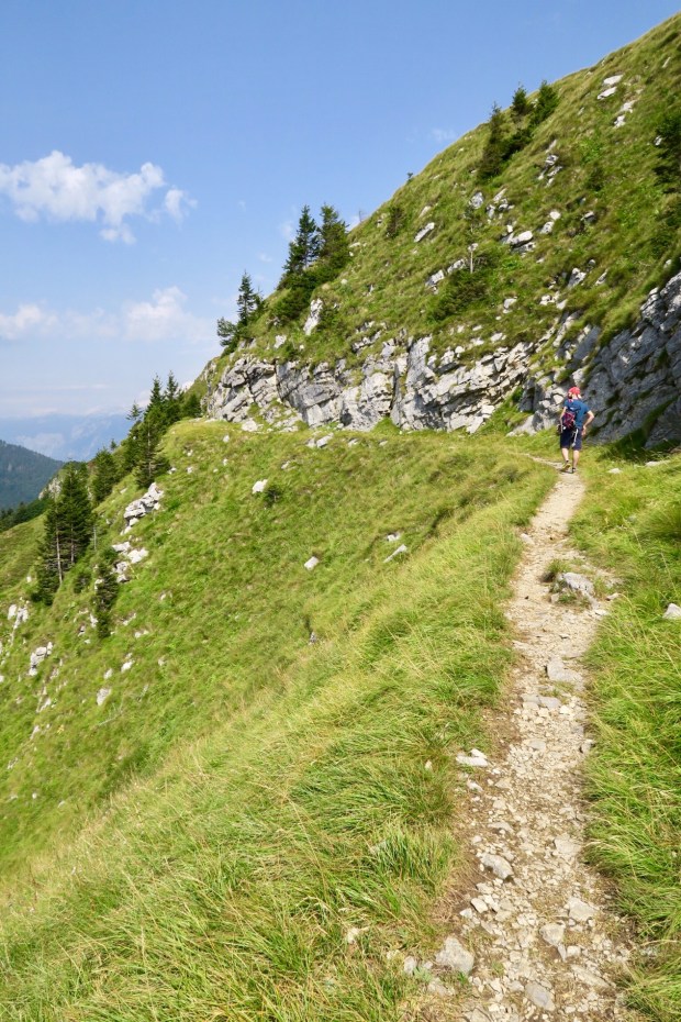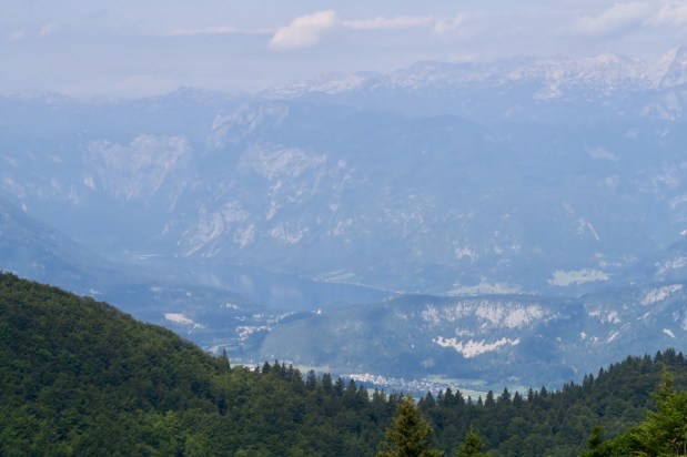 Am Dienstag sind wir bei strahlendem Sonnenschein nach dem Frühstück aufgebrochen Richtung Bohinjsko jezero (dt. Wocheinersee), wozu mal wieder ein Pass überquert werden musste. Die Straßen in Slowenien sind übrigens tückisch für größere Autos. Man wiegt sich ein wenig in Sicherheit, wenn es einen Mittelstreifen gibt, allerdings sind dann beide Straßenhälften so klein, dass man trotzdem nicht einfach sorglos drauf losfahren kann. Ein befestigtes Bankett links oder rechts gibt es sowieso nicht. Besonders spannend wird es, wenn dann zwei LKW aufeinandertreffen und alle Autos, die dahinter sind, rückwärts fahren müssen, bis die LKW dann Seite tauschen und aneinander vorbeifahren können… was für ein Manöver… Aber das war ja schon vor ein paar Tagen, fiel mir nur grade wieder ein. 😉