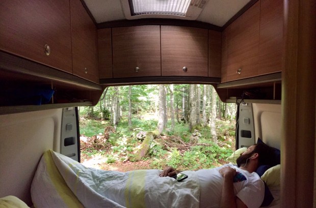Frisch geduscht haben wir den Nachmittag über noch gelesen, gechillt und Musik gehört und die Heckaussicht in den Wald genossen und nach dem selbstgemachten Abendessen sind wir nochmal auf ein Getränk in die Hütte hoch, um anschließend festzustellen, dass sich zwei sogenannte Kuschelcamper ganz schön nah an unser Womo rangestellt haben. Meeeh. Aber war schon fast wieder dunkel und in sofern egal.