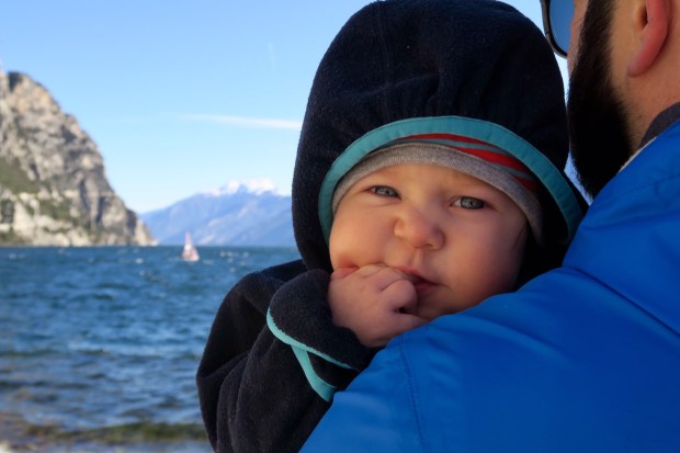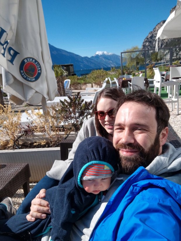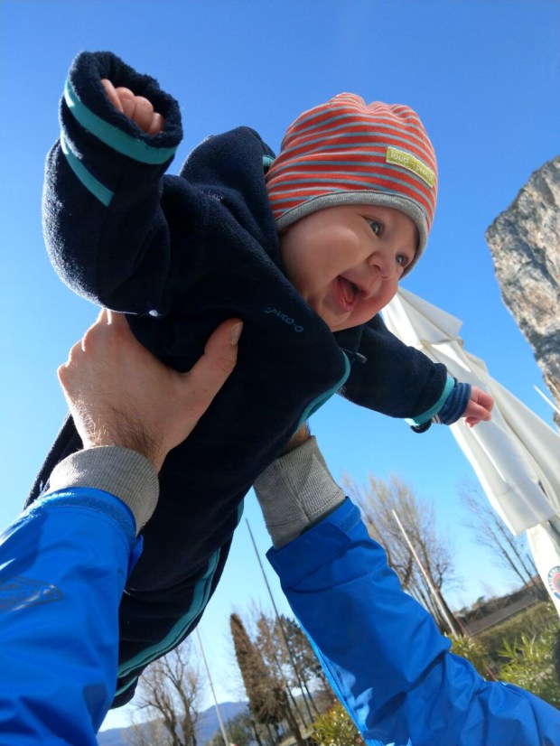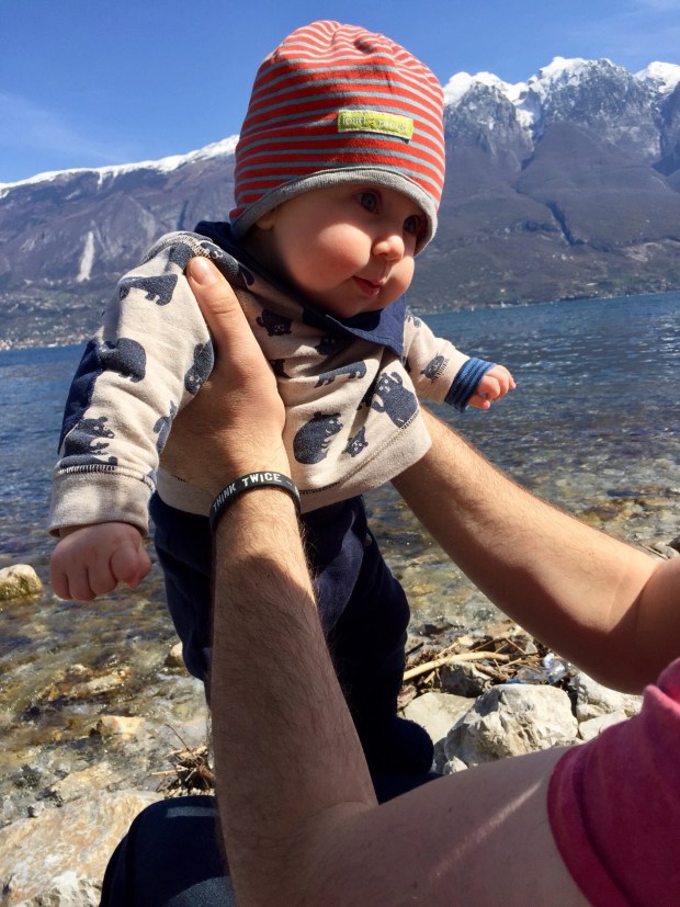 … ja, das ist mein Ernst. Der gute alte Gardasee. Wie man da neue Abenteuer erleben kann, fragt ihr euch? Na, wenn man einen neuen Reisepartner hat natürlich! Einen zwar noch recht kleinen, aber trotzdem dreht sich schon alles um ihn. Unser Zwergi (bald 4,5 Monate alt) war zwar indirekt letztes Jahr auch schon in Frankreich, in der Schweiz und Slowenien dabei, aber jetzt braucht er einen eigenen Sitzplatz im Bus und der ist sogar so groß, dass der Standarttisch erst mal ausgebaut und durch einen schmaleren ersetzt werden musste damit die Babyschale samt isize Platz hat.