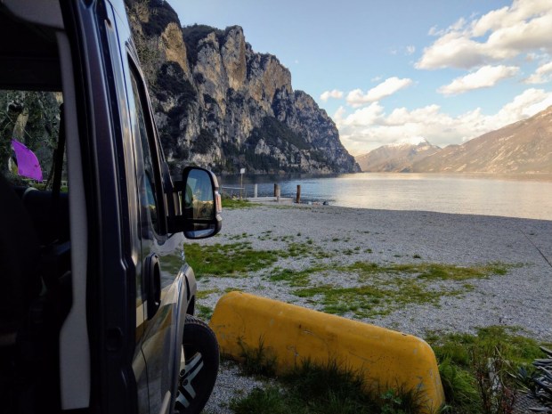 Eigentlich wäre ein Spaziergang in Arco ganz schön gewesen, aber am Ostersonntag war jeder Parkplatz gefühlt doppelt belegt und die Menschen schoben sich durch die Gassen. Nein danke. Also weiter. Ich sollte noch erwähnen, dass wir wie immer nichts vorgebucht hatten und spontan unterwegs waren. Einen Campingplatz bei Limone haben wir angefahren, aber der war überfüllt und eh nicht so unser Ding, auch wenn man auf den See runterschauen konnte.