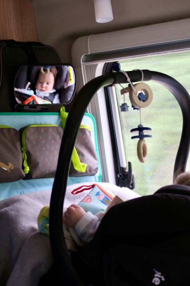 Der Spaziergang reicht uns noch nicht und wir hängen ein paar Meter dran um die Siedlung und am Bach entlang. Gerade regnet es nicht mehr und Johannes ist wieder wach und bestaunt alles mit groooooßen Augen!