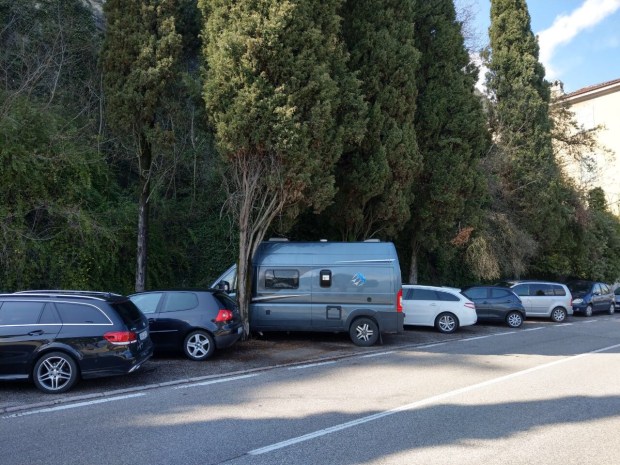 Nachdem der Lago di Ledro uns nicht so überzeugt hat, fahren wir hinunter nach Riva, wo die Sonne scheint und es schön warm ist.
