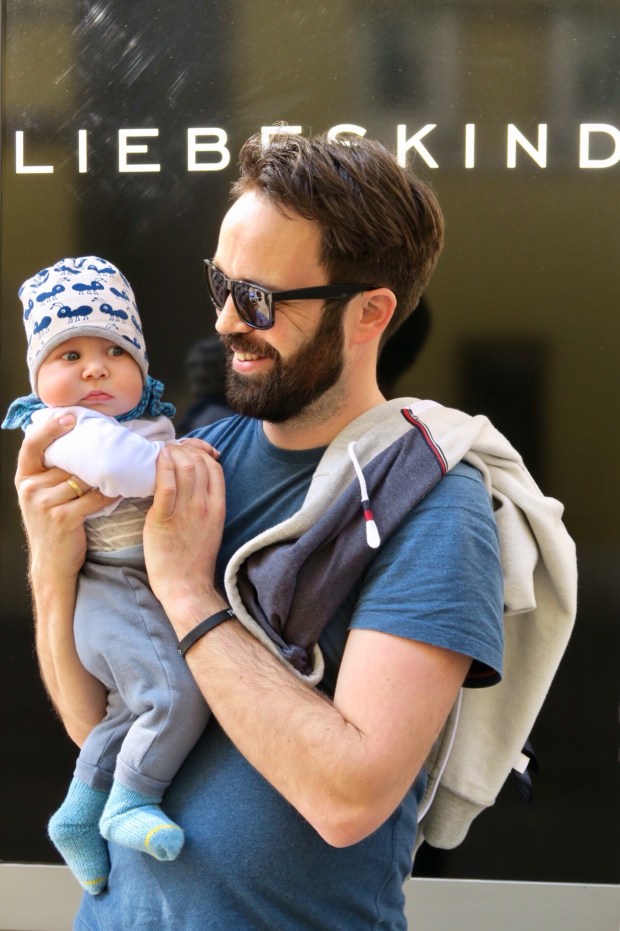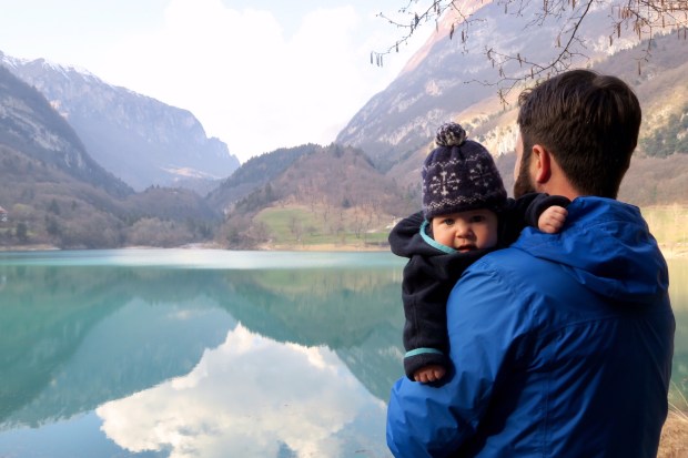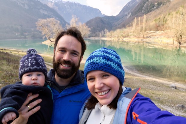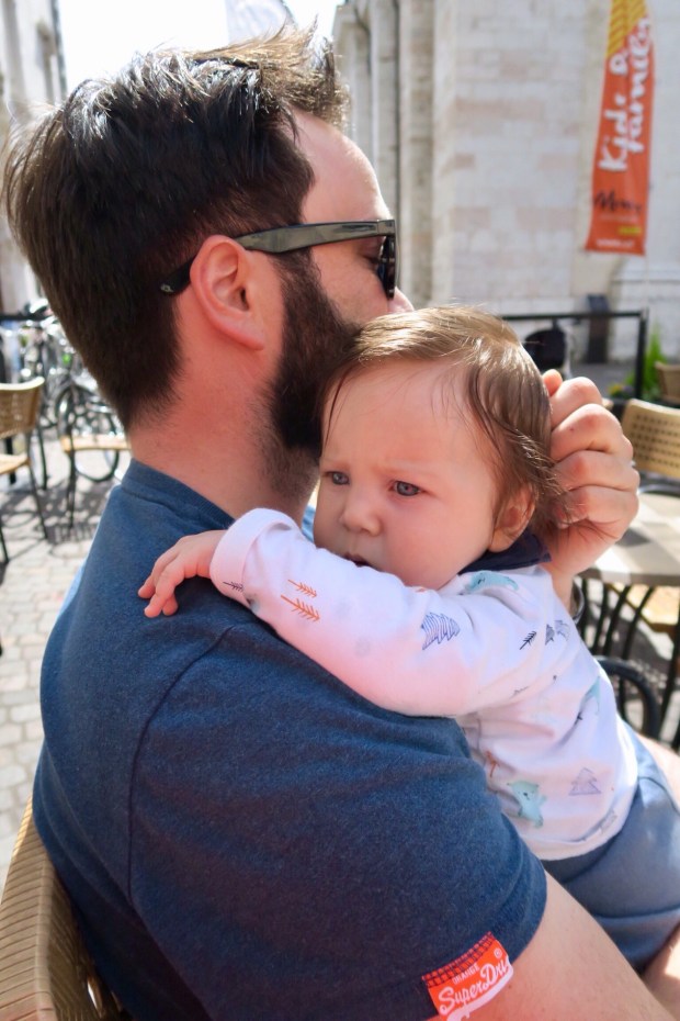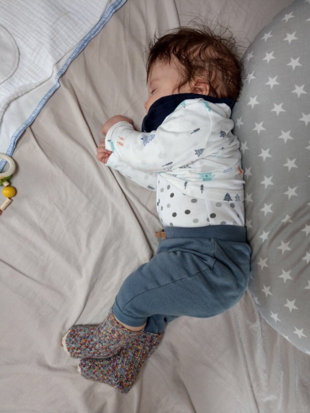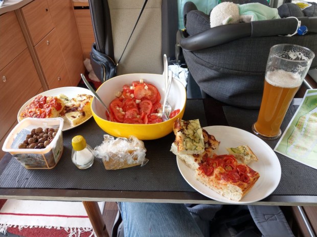 Johannes ist ein bisschen müde und schläft schon auf dem Arm und dann gleich wieder im Womo ein.