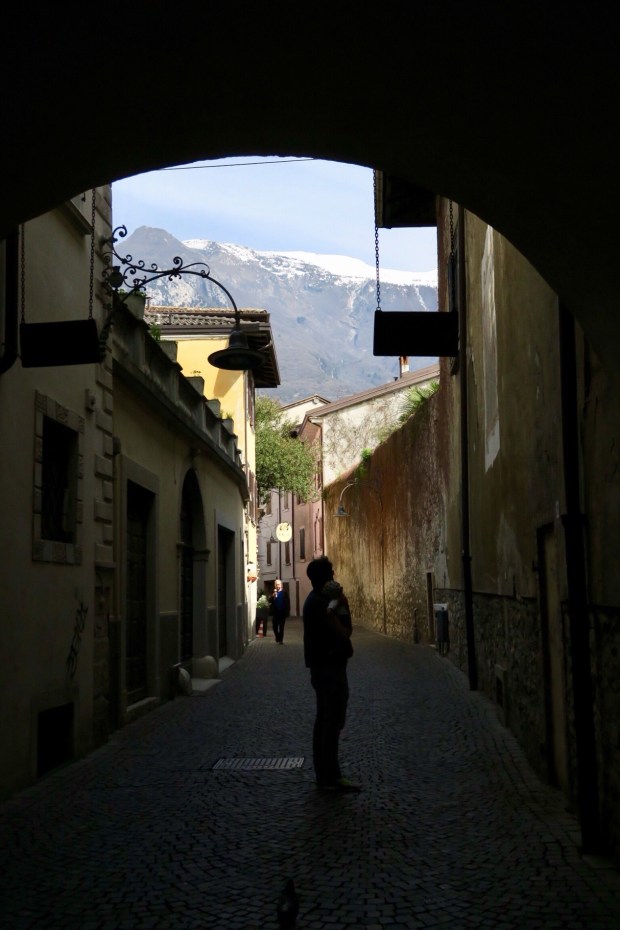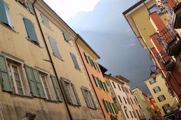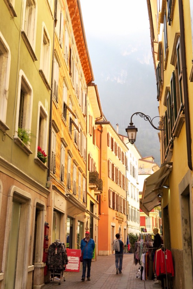 Arco selber war um die Mittagszeit etwas ausgestorben – ich versteh einfach nicht wieso die Italiener mittags immer noch die Läden zumachen… Die Schaufenster waren nicht sonderlich abwechslungsreich, eigentlich gibt es fast nur noch Sportequipment für die Kletterer und Mountainbiker, die hier in Massen zu finden sind. Aber auch viele Pseudobiker mit Cube-Ebikes.
