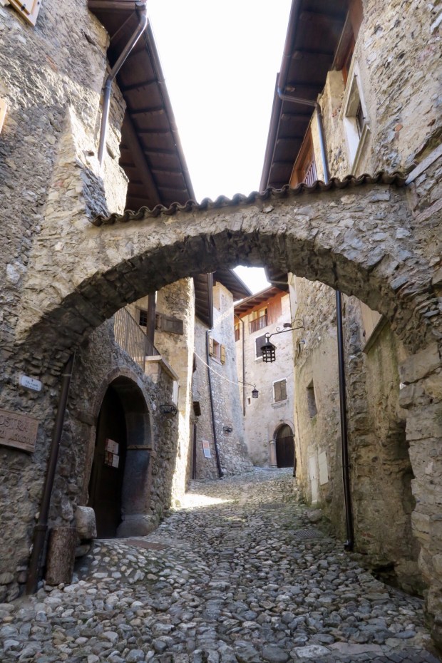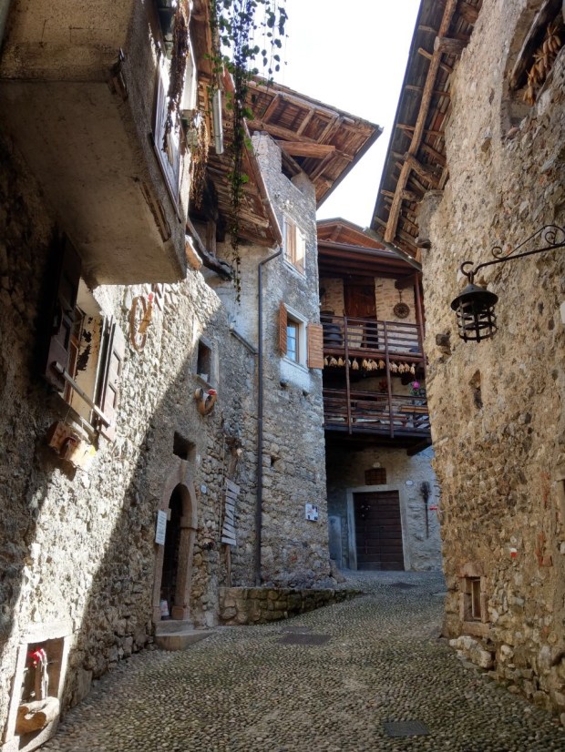 Nach einem Ausparkmanöver, das wesentlich einfacher war als das Einparkmanöver, geht es schon wieder hinauf in die Berge Richtung Lago di Tenno. Eine herrliche Landschaft mit vielen kleinen sehr alten Dörfern durchqueren wir.