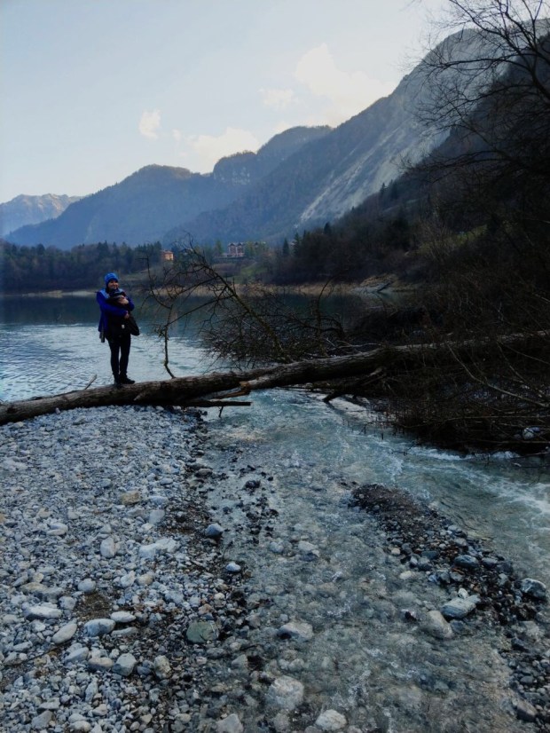 Das Licht ist gerade herrlich und wir beschließen den See zu umrunden. Johannes hat zeitweise mal wieder eine „kein Bock auf die Trage“ Phase und wir tragen ihn ein Stück so…