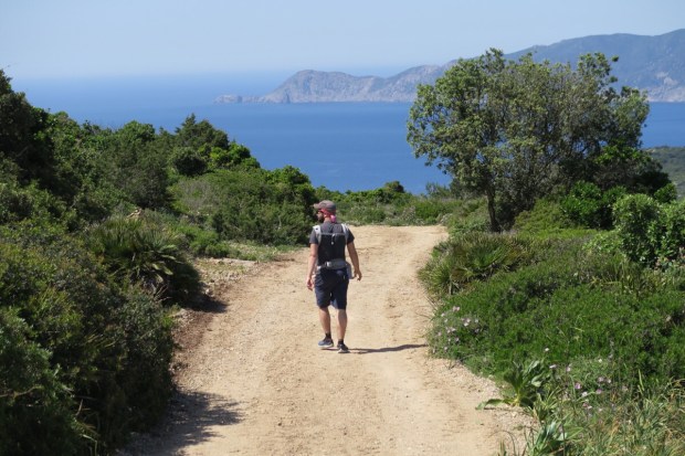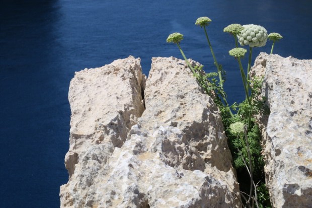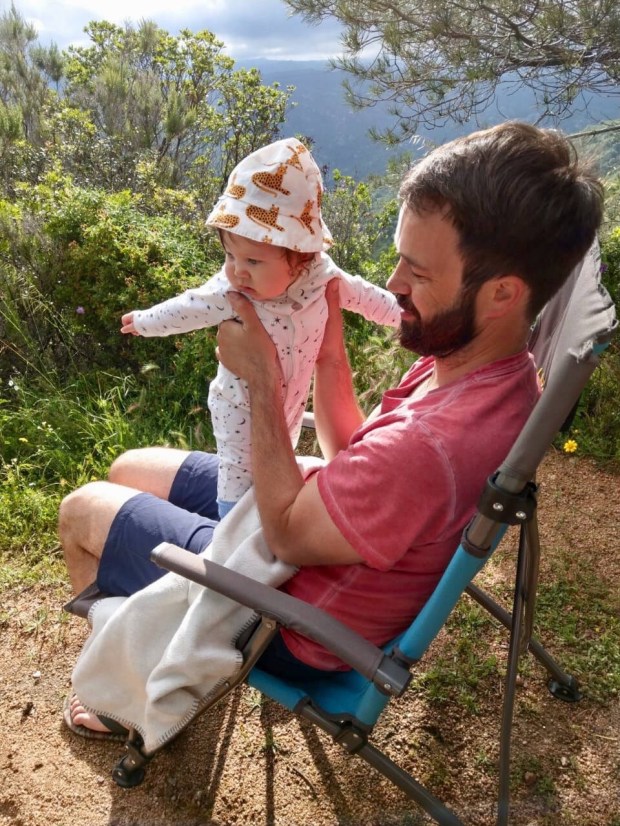 Am Parkeingang muss man sich anmelden und Eintritt bezahlen, 10€ für zwei Erwachsene wenn man bis zum oberen Parkplatz fahren will, was bei der Hitze mit unserem Zwerg aber durchaus sinnvoll war. Also haben wir im Pinienschatten geparkt und sind erst mal vor zum Aussichtspunkt gegangen.