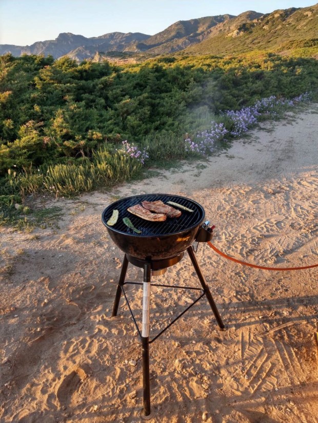 Freicamper-Himmel quasi. Wir haben direkt mal die Stühle, den Tisch und den Grill ausgepackt und langsam der Sonne beim Untergehen zugeschaut.