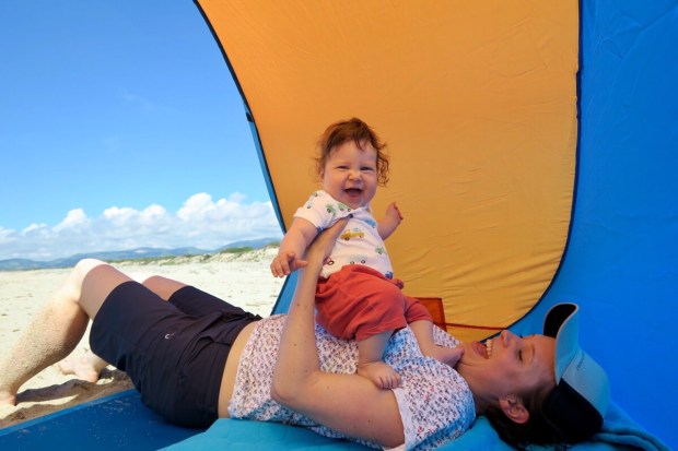 Also haben wir noch im Ort nebenan eingekauft und sind dann an den nahen Strand runtergefahren, wo Simon nochmal im kristallklaren Wasser eine Runde schwimmen war. Eine ganz liebe Mama mit einem Baby, das nur 6 Tage älter war als Johannes kam zu uns rüber und wir haben länger geratscht und ihnen dann unseren tollen letzten Stellplatz empfohlen.