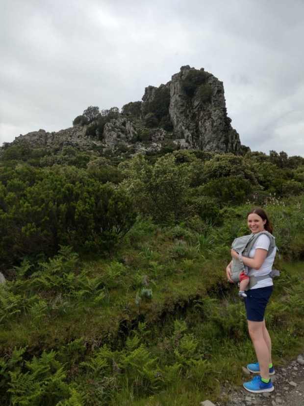 Wie das so ist, wenn man mal eben kurz ein paar Meter gehen will und nichts mitnimmt, wird aus so einem Spaziergang gleich eine längere Geschichte. Simon wollte gerne noch zu dem Gipfel hoch, ich eigentlich umdrehen, weil es schon ein bisschen tröpfelte und ich nur mäßig begeistert war, mit Baby auf einer Motocross Strecke entlangzuwandern. Vorteil der Bikes ist, dass man sie aber schon lange vorher hört und insgesamt sind auch nur ein Quad und ein Bike langsam an uns vorbeigefahren, weil sie uns rechtzeitig gesehen hatten.