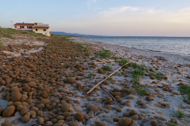 Unsere Reiseleitung hat uns gestern aufgeklärt, was es mit diesen „Filzkugeln“ auf sich hat. Ich dachte, dass sie wie Kokosnüsse aussehen, es ist aber Seegras, das im Herbst und Winter über die Insel bzw. den Strand gepustet wird und sich nach und nach zu Kugeln formt. Auf Menorca wird das Seegras im Sommer an den Badestränden an die Seite geschoben und im Winter wieder verteilt, damit die starken Nordwinde den Sand nicht davontragen. Im Gegensatz zu Mallorca, das das Seegras entsorgt, muss Menorca nach dem Winter keinen Sand zukaufen, um die Strände wieder aufzufüllen. Das ist intelligenter Umweltschutz, oder? Reisen bildet 😁