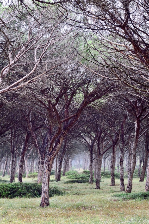 Leider mussten wir die Tür schnell wieder zumachen, weil die Mücken in Scharen unterwegs waren. Am hinteren kleinen Fenster hingen teilweise 3 gleichzeitig am Moskitonetz. Es fing dann in der Nacht ziemlich zu regnen an und kühlte zum Glück auch gut runter. Am Morgen war zwar alles nass draussen, aber die Luft war herrlich und wir sind noch kurz zu dem Pinienwald hinter uns gelaufen. Stehen bleiben, um Fotos zu machen war eher schlecht, hatte man doch gleich wieder 5 Mücken an einem Bein. Die 4 Stiche, die mich die Fotos dann doch gekostet haben, warens mir aber wert. Es juckt eh schon überall, da kommt es auf ein paar mehr Stiche auch nicht an.