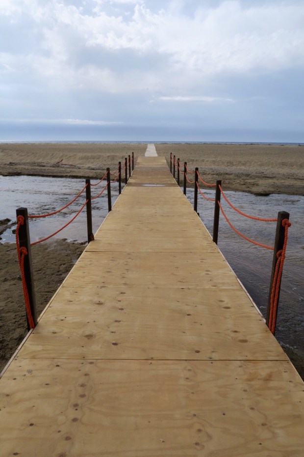 Im Womoführer war schon gestanden, dass es eine „Abkürzung“ gibt, wenn man Glück hat. Eine Art Schleusendamm 900m lang, breit genug für ein Womo und eventuell nicht immer offen. Als wir dort ankamen, frustrierte uns erst mal ein Durchfahrt verboten Schild und ich war schon im „hatte ich doch Recht und wären wir bloß außen rum gefahren“-Modus. Simon machte ein paar Fotos.