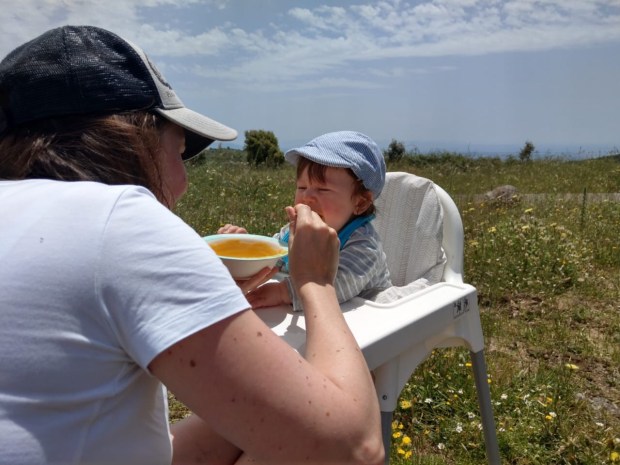 Um halb 2 waren wir wieder am Bus und die Raubtierfütterung stand an. Schon praktisch, dass wir tatsächlich den Ikea Hochstuhl mitgenommen haben. Den brauchen wir im Gegensatz zum Kinderwagen fast täglich.