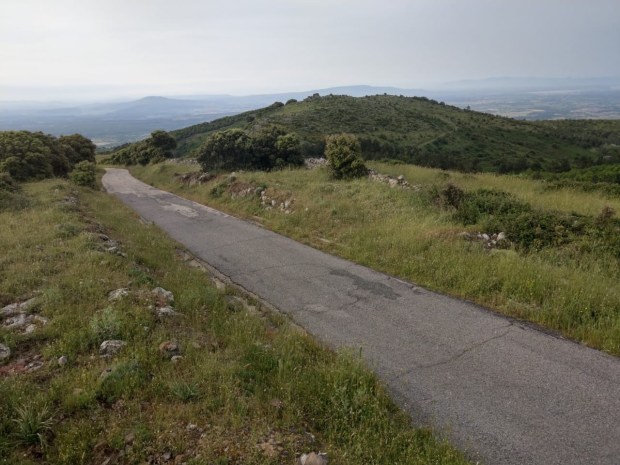 Um kurz vor 12 beschlossen wir, zu Fuß zu erkunden, wohin die Straße denn noch weiter führen würde (und ob noch ein besserer Platz gekommen wäre…). Auf einem Hügel in der Nähe erspähten wir Wildpferde.