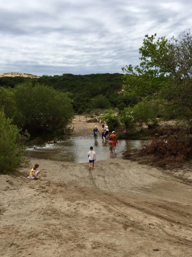 Also beschlossen wir, eine Kaffeepause zu machen und zu Fuß vor zu den Dünen zu laufen. Aber dann kamen die beiden VW Busse an. Die wollten auch durch die Furt. Also alle Mann ins Wasser, schauen was geht.