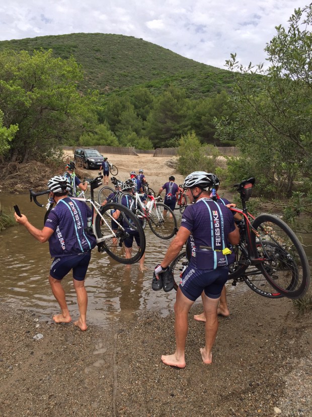 Gut gegangen und der Unterboden war auch wieder sauber. Gleich danach kam eine große Gruppe Rennradfahrer an, die alle ihre Schuhe auszogen und die Räder durchtrugen. War witzig.