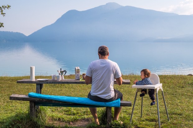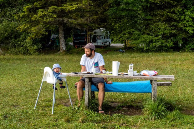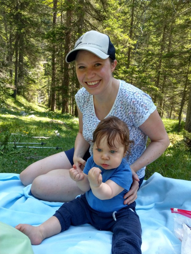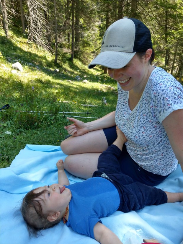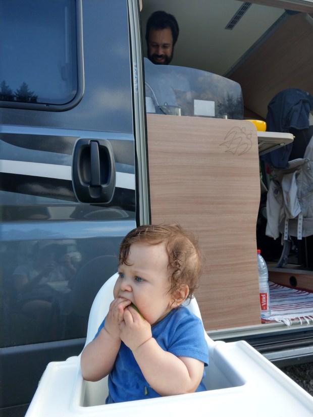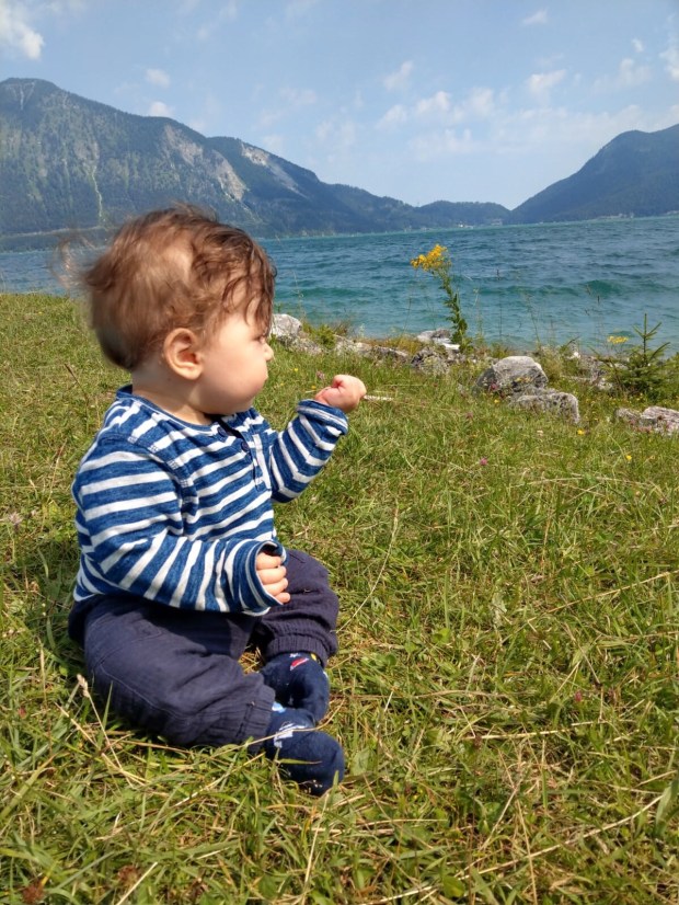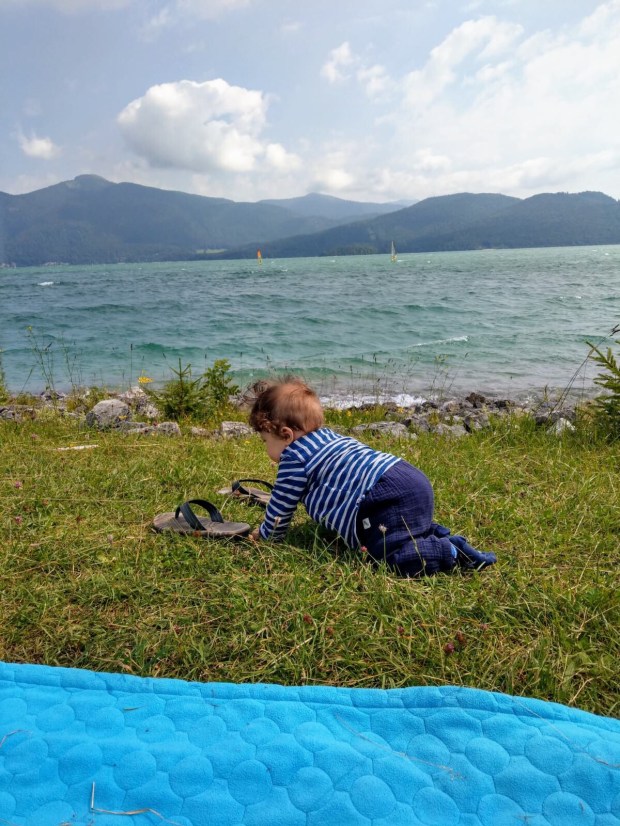Nach kurzem Hin- und Herüberlegen, ob wir gleich zurück an den Sylvensteinspeicher fahren, damit wir nicht nochmal Maut zahlen müssen oder doch an den Walchensee, gewann letzterer. Eigentlich wollten wir hier auch unser Mautticket nochmal nutzen und kurz vor an den See fahren, aber zum Glück entschieden wir uns, erst mal abzuchecken wieviel Platz denn noch auf dem Womo Stellplatz ist. Denn da war nicht mehr viel… also haben wir uns einen der letzten Plätze an der Wiese geschnappt und die Decke für Johannes ausgebreitet. Denn hinten im Womo-Bett kann man ihn nicht mehr alleine rumwursteln lassen…