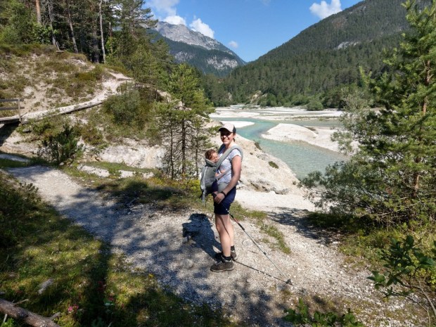 Die Tour zur Gleirschklamm hatte Simon zufällig im Internet entdeckt und sie war mit 3:30h und 330hm beschrieben als gut machbar und leicht zu gehen. Ich hatte Johannes wieder vorne in der Trage, der mit 9kg aber auch immer schwerer wird. 😅 Aber noch macht mein Kreuz des gut mit… vorm Sommerurlaub muss aber noch eine Kraxe her, weil er bis dahin ja wirklich gut stabil selber sitzen kann.