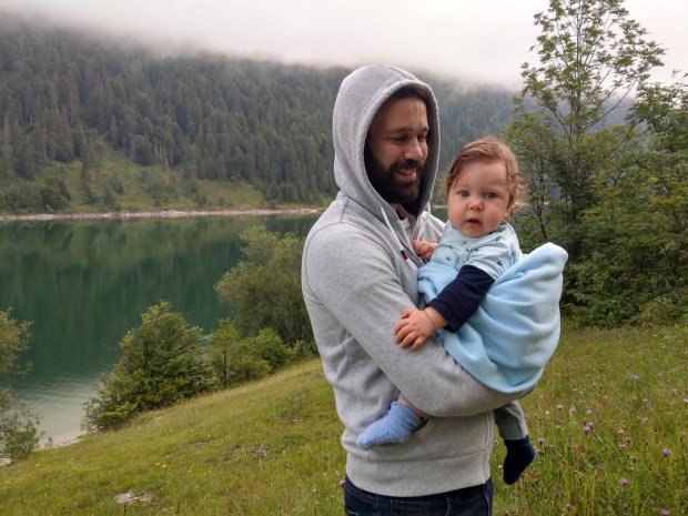 Simon hat dann gekocht und Johannes schien müde zu sein, aber irgendwie wollte er so gar nicht einschlafen hinten… also nochmal „Kuckuck“ gespielt mit Papa…